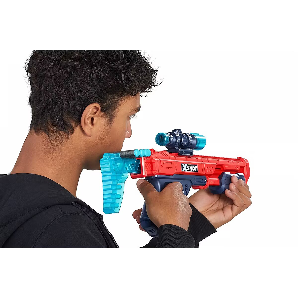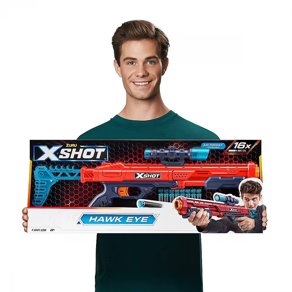 Description - ZURU X-Shot EXCEL HAWK EYE Launcher (16 darts) Train your accuracy and become a master of precise shots with the X-Shot Excel Hawk Eye launcher! This toy gun takes fun to a whole new level and turns crazy assault into surgical precision. The Excel Hawk Eye model is 60 cm long, so when you take it in your hands you will feel like a real sniper! You don't have to do everything yourself, because the ZURU X-Shot missile launcher is equipped with gadgets that will make it easier for you to shoot accurately. The pump-action mechanism combined with a detachable scope will allow you to shoot precisely at a distance of up to 27 meters! Use the tactical grip to additionally stabilize the shot and be always ready for battle thanks to the additional storage space for up to 16 darts! The X-Shot Excel Hawk Eye launcher is a toy weapon for firing accurate shots! Use the detachable scope to precisely shoot at distances up to 27 meters! Your hand won't even shake when you use the shot stabilizing grip. Out of ammo? No worries! An additional dart compartment will keep you combat ready in all circumstances! The set includes as many as 16 darts that fly at dizzying speeds! For children over 8 years old. Shoot exactly where your eyes go with the X-Shot Excel Hawk Eye!