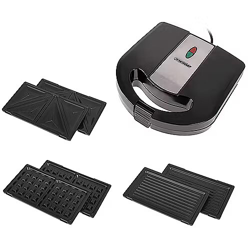 Iepakojuma saturs > Komplektā ietilpst piederumi - Sviestmaižu, vafeļu un grila plāksnes