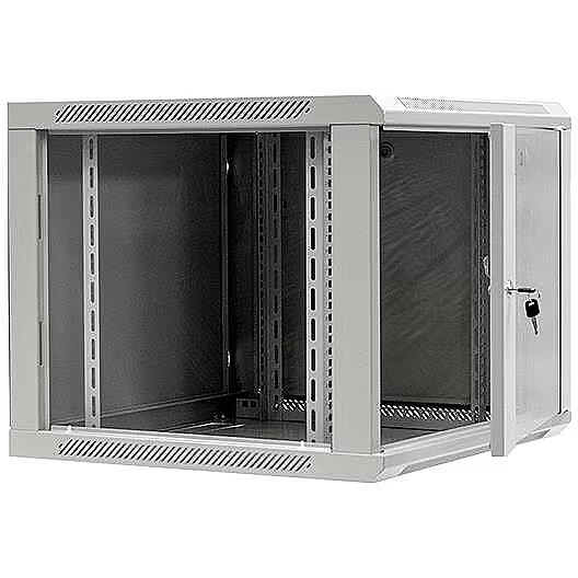 Netrack wall/hanging cabinet 19'',9U/600 mm,glass door,grey,remov. side pan.