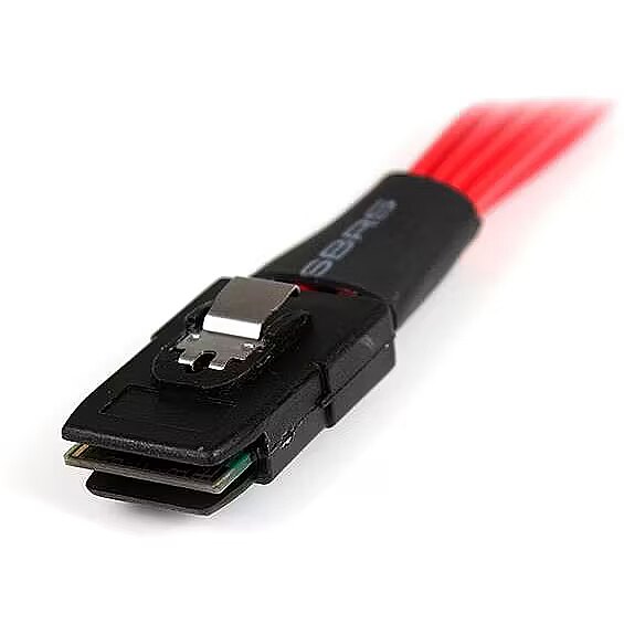 ShortSummaryDescription - StarTech.com 50cm Serial Attached SCSI SAS kabelis - SFF-8087 ar 4x fiksatoru SATA, 0,05 m, SFF-8087, SATA, vīriešu/vīriešu, melns, sarkans, 60 g