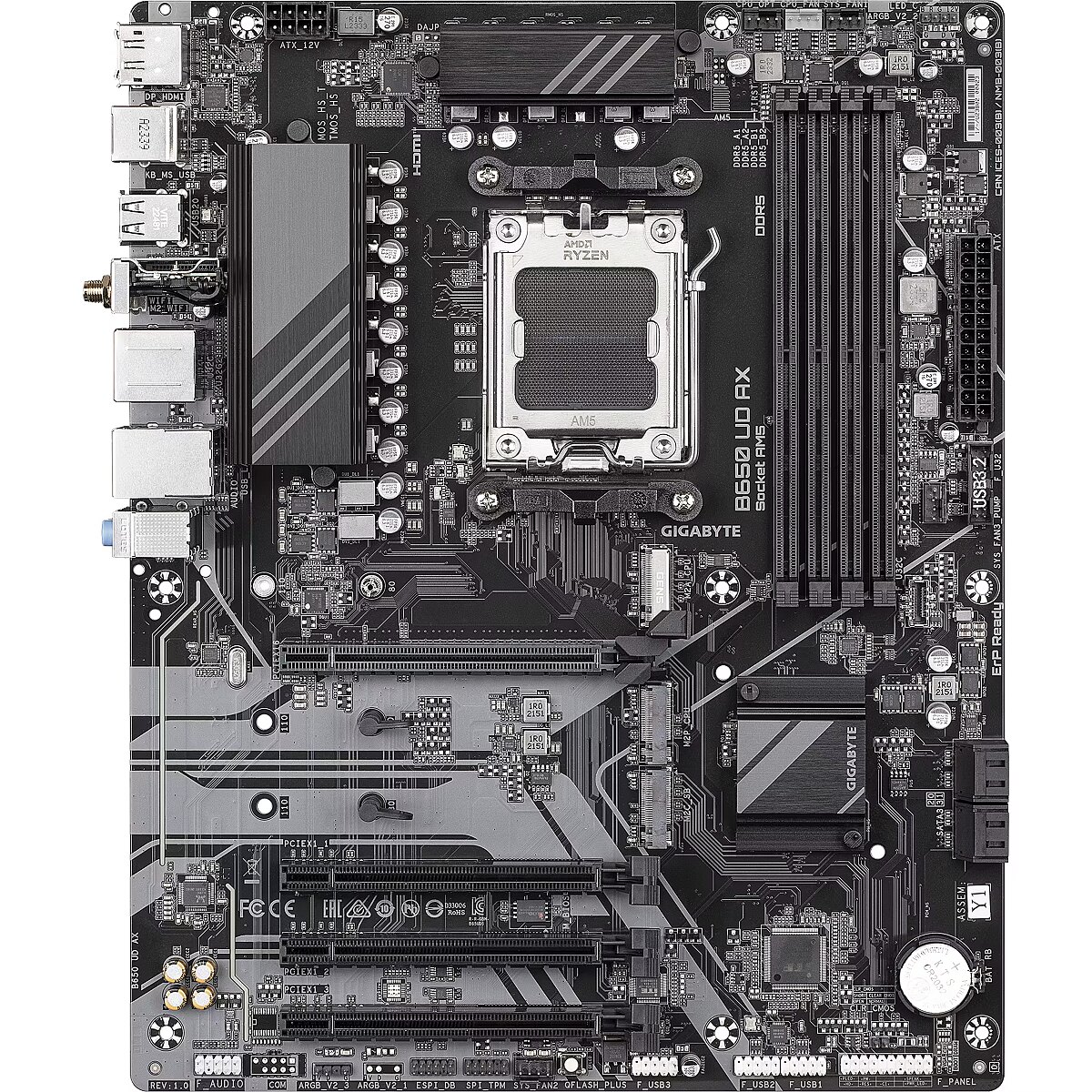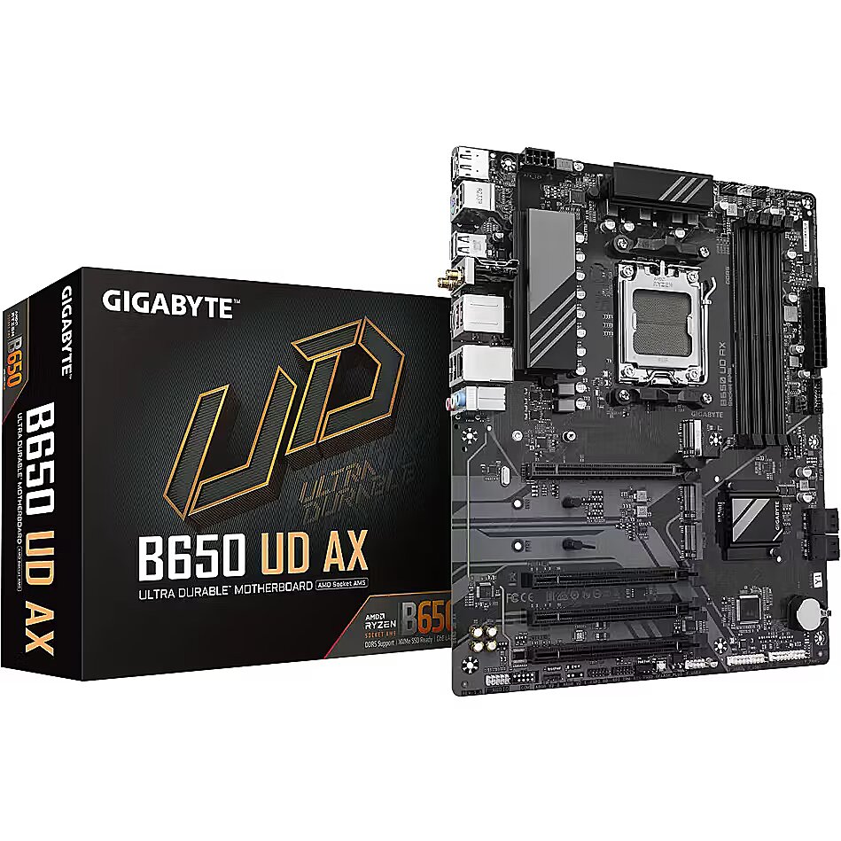 ShortSummaryDescription - GIGABYTE B650 UD AX Motherboard - AMD Ryzen 9000 Series CPUs, 6+2+2 Phases VRM, up to 7600MHz DDR5 (OC), 1xPCIe 5.0 + 2xPCIe 4.0 M.2, GbE LAN, WIFI 6, USB 3.2 Gen 2, AMD, Socket AM5, AMD Ryzen 7000 Series, AMD Ryzen 8000 Series, AMD Ryzen 9000 Series, Socket AM5, DDR5-SDRAM, 256 GB
