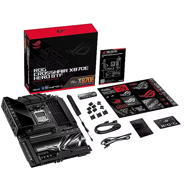 ShortSummaryDescription - ASUS ROG CROSSHAIR X870E HERO BTF, AMD, Socket AM5, AMD Ryzen 7000 Series, AMD Ryzen 8000 Series, AMD Ryzen 9000 Series, DDR5-SDRAM, 256 GB, DIMM