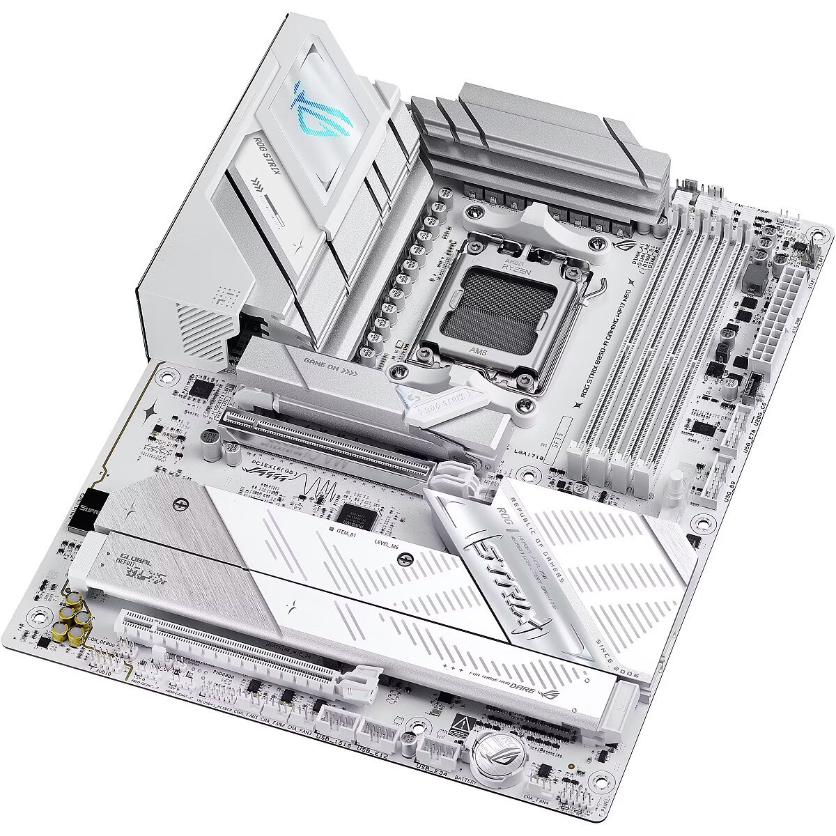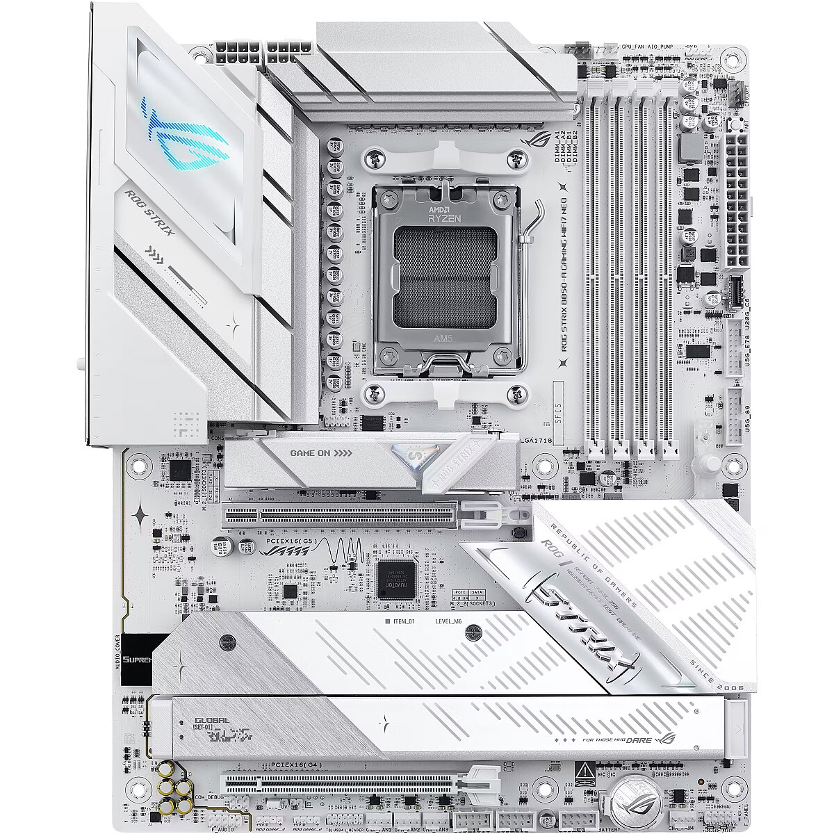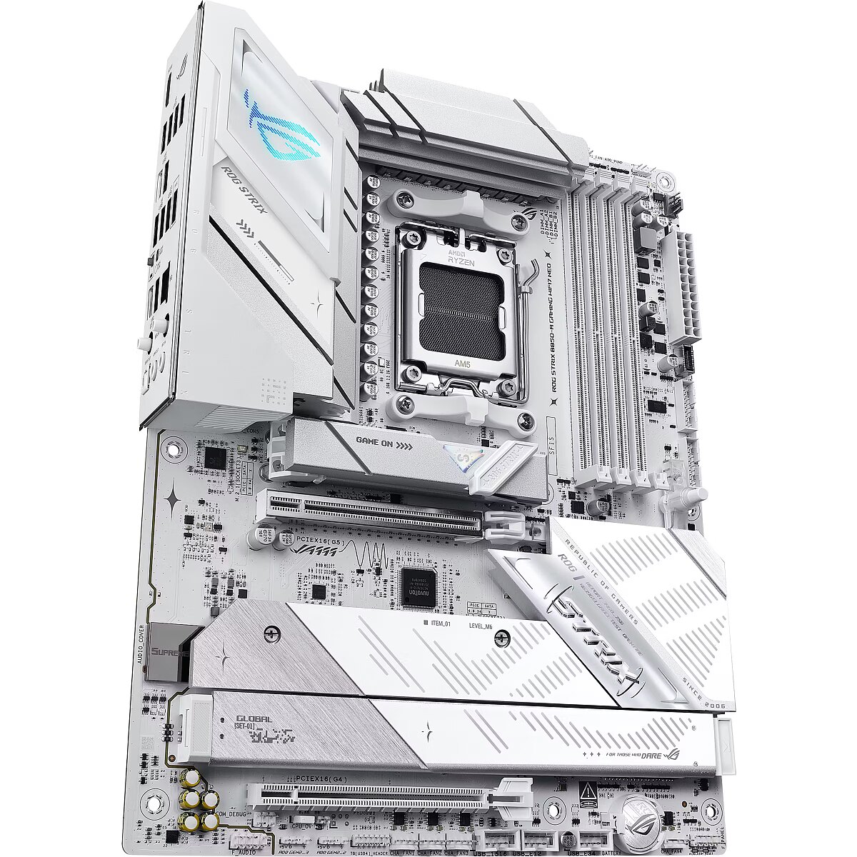 LongDesc - The ROG STRIX B850-A GAMING WIFI7 Neo motherboard features a sleek white PCB and support for AMD Ryzen™ 9000, 8000, 7000 Series processors, delivering smarter performance and faster connectivity for gaming, creation, and everyday use. Powered by AI technologies — including AI Cache Boost, ASUS AI Advisor, AI Networking II, AI Cooling II and AEMP — it offers a streamlined setup and optimized performance. With support for up to 23 USB ports, enhanced memory routing, EZ PC DIY design, 64MB BIOS, and Realtek ® 5G Ethernet, users can enjoy seamless setup, future-ready compatibility, and ultra-fast, stable networking.