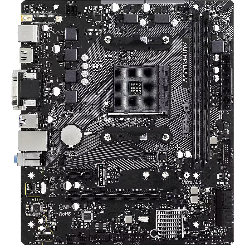 Apraksts - A520M-HDV Atbalsta 3. paaudzes AMD AM4 Ryzen™ / nākotnes AMD Ryzen™ procesorus (3000 un 4000 sērijas procesori) 6 fāžu barošanas konstrukcija Atbalsta DDR4 4733+ (OC) 1 x PCIe 3.0 x16, 1 x PCIe 3.0 x1 Grafiskās izejas opcijas: D-Sub, DVI-D, HDMI 7.1 CH HD audio (Realtek ALC887 audio kodeks) 4 x SATA3, 1 x Ultra M.2(Gen3 x4 & SATA3) 6 x USB 3.2 Gen1(4 x aizmugurējais, 2 x priekšējais) 6 x USB 2.0(2 x aizmugurējais, 4 x priekšējais) Realtek Gigabit LAN