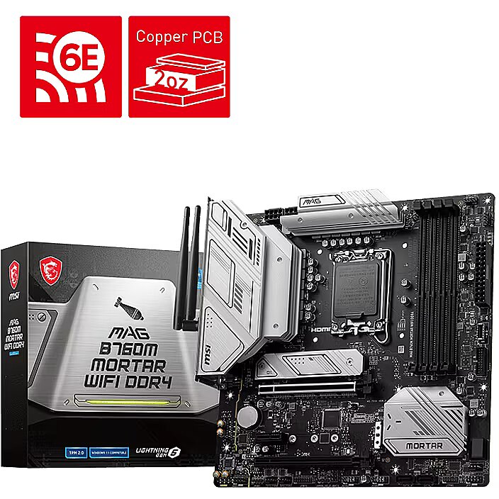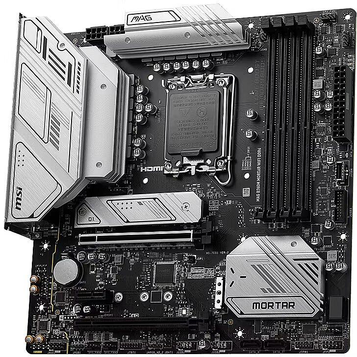 LongDesc - The MAG series fights alongside gamers in pursuit of honor.With added military-inspired elements in these gaming products, they were reborn as the symbol of sturdiness and durability.Extended HeatsinkExtended Heatsink enlarges the surface of heat dissipation, ensuring even high-end processors to run in full speed.M.2 Shield FrozrKeeps M.2 SSDs safe while preventing throttling, making them run faster.Heavy Plated VRM HeatsinkThe VRM heatsink covers the upperMOS and helps dissipate the heat.7W/mK Thermal Pad &Additional Choke PadHigh quality 7W/mK MOSFET thermal pads and extra choke thermal pads ensure all cores running in high performcance.OPTIMIZED FOR WATER COOLINGDesigned to support the most popular All-In-One & customized water cooling solutions on the market. A dedicated water pump PIN header supports up to 3 amp, giving you full control of the water pump speed. A clearly marked ‘keep-out-zone’ allows for easy and safe installation and a perfect fit.12+1+1 DUET RAIL POWER SYSTEMUnleash and sustain maximum performance with an aggressive VRM design built with digital CPU power system. Combining 8 + 8-pin power connectors and exclusive Core Boost technology, MAG B760 series motherboard is ready to sustain heavy gaming loadings.OPTIMIZED PCB SOLUTIONThe PCB design has been optimized for higher bandwidth and faster transfer speeds, which is also beneficial for reliable circuit transmission.Have trouble turning screws? MSI innovative EZ M.2 clip assist you install an M.2 SSD quickly and effortlessly.LIGHTNING GEN 5 PCI-E WITH STEEL ARMORLIGHTNING GEN 5 PCI-EDoubling over the previous generation, the bandwidth of a x16 interface can reach 128GB/s.SMT PCIE 5.0 SLOTThe advanced SMT(Surface Mount Technology) PCIE slot diminish interference and electrical noise, fully support the PCI-E 5.0 signal.REINFORCED, HEAVY SOLDERED CONNECTIONSSecure to the motherboard with extra solder points and support the weight of heavy graphics cards.FAST AND FUTURE-READY STORAGEMSI MAG series motherboards support all the latest storage standards, which allows users to connect any ultra-fast storage device. Start games faster, load levels faster and have a real advantage over your enemies.LATEST DDR5 MEMORY WITH SMT SLOTA huge step of DDR performance enhancement with the latest DDR5 memory. Combines with dedicated SMT welding process and MSI Memory Boost technology, MAG B760M MORTAR WIFI is ready to deliver the world class memory performance.EASY OVERCLOCKING WITH XMP PROFILEThe XMP (Extreme Memory Profiles) in MSI BIOS are tested and certified by MSI OC LAB. It is easy to enable with auto power settings to get the best memory speed and stability.MSI brand new MSI Center unifies a suite of MSI software utilities into a single centralized application. Take control of advanced motherboards features and unleash endless possibilities.EXTEND YOUR RGB EXPERIENCE WITH EASEAdd more color if you want! Mystic Light Extension pin header provides an intuitive way to control additional RGB strips and other RGB peripherals added to a system, without needing a separate RGB controller.HIGH-BANDWIDTH AND LOW-LATENCY NETWORKMSI's premium network solution provides incredible data transfer speed for demanding users.