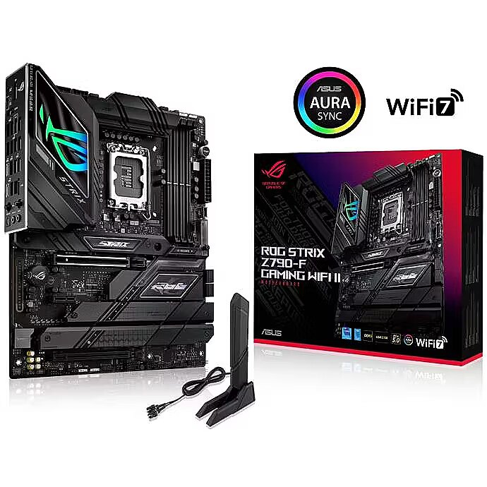 LongDesc - ROG STRIX Z790-F GAMING WIFI IIThe ROG Strix Z790-F II strikes from the shadows with a flurry of advanced power and features to elevate the latest Intel® processors, graphics cards, storage and wireless networking to the next level. Armed with enhanced DDR5 support, ample cooling, PCIe 5.0 and WiFi 7, this high-performance ninja is ready for the toughest of missions.PCIE® SLOT Q-RELEASEA physical button unlocks the first PCIe slot’s security latch with one press, greatly simplifying the process of detaching a PCIe card from the motherboard when it’s time to upgrade to a new GPU or other compatible device.ALL-ROUND PERFORMANCERobust power delivery, breakneck DDR5 memory, speedy storage, and comprehensive cooling elevate any build with the ROG Strix Z790-A II at its center.AI OVERCLOCKINGTuning is now faster and smarter than ever before. ASUS AI Overclocking profiles the CPU and cooling to predict the optimal configuration and push the system to its limits. Predicted values can be engaged automatically or used as a launching ground for further experimentation.LEADING CONNECTIVITYNext-gen connectivity and low-latency networking are hallmarks of the ROG ecosystem, and the Strix Z790-F II delivers both of them in full. Joining them is an advanced audio solution for immersive sound so you can pick out the slightest cues and nuances.WIFI 7With Multi-Link Operation (MLO)*, WiFi 7** can outperform WiFi 6E to deliver faster speeds, higher reliability and increased data transfer efficiency.Intel 2.5G EthernetLow-latency gaming, speedy file transfers, and high-resolution video streaming are among the many perks of onboard Intel® 2.5 Gbps Ethernet.PLAY IN STYLEBold aesthetics and Aura Sync RGB controls let the ROG Strix Z790-F II shine in every build.SOFTWARE UTILITIESA myriad of ROG-exclusive tools put advanced system tuning and configuration at your fingertipsAI COOLING IIBalance the thermals and acoustics of any build with a single click. A proprietary ASUS algorithm slashes unnecessary noise while running a quick stress test, and then monitors CPU temperatures to dynamically adjust fans to optimal speeds.DARE TO BE GREENWe at the Republic of Gamers are on a mission to create a sustainable future where all gamers can flourish on the planet we call home.Every step counts, and as part of ROG’s commitment to creating a more sustainable future, ROG has begun to utilize post-consumer recycled (PCR) plastic and paper materials certified by the Forest Stewardship Council (FSC™) in the packaging of motherboard.For those who dare, join us on our journey as we make the world a better place.INTEL® UNISON™Our latest ROG and ROG Strix Z790 WiFi 7 motherboards help you unify your tech life with a free 9-month subscription to Intel Unison.Intel Unison lets you use a compatible tablet as a second display, wirelessly transfer content between your phone, computer and tablet, and to do thing like accessing your smartphone’s picture photos while you’re working from on your PC. You can also keep an eye on your text messages and notifications while you’re working on your PC to stay connected without losing your flow, and you can even make phone calls without touching your phone.
