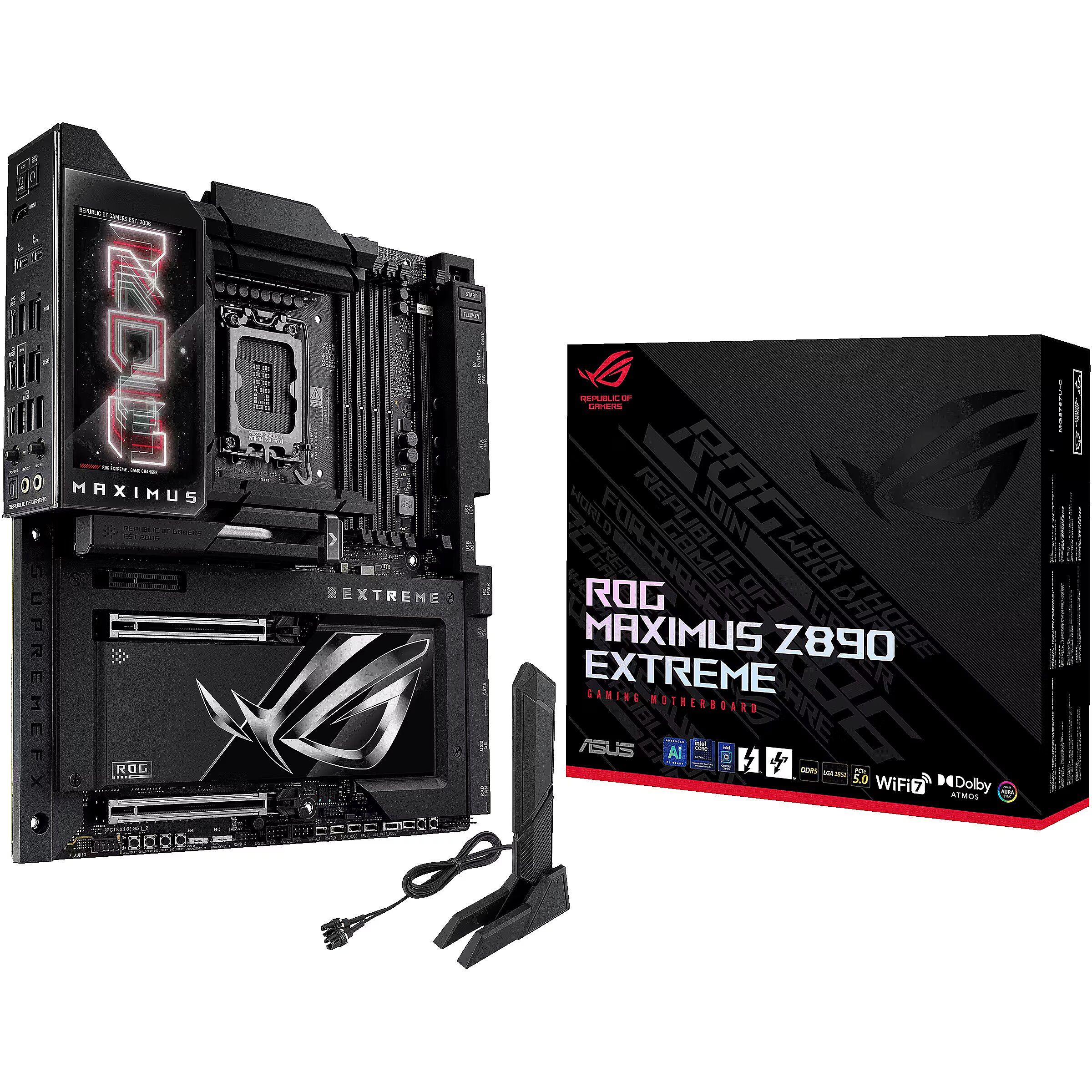 LongDesc - ROG Maximus Z890 ExtremeThe ROG Maximus Z890 Extreme is the ultimate expression of cutting-edge motherboard technology and performance. Discover the upper limits of Intel® Core™ Ultra Series 2 processors, DDR5 modules, PCIe® 5.0 graphics cards, NVMe storage, USB connectivity, Thunderbolt™ functionality and more – all wrapped up in a sleek package featuring a full-color 5-inch long LCD screen that can deliver vibrant imagery or live system stats to suit your personal tastes.