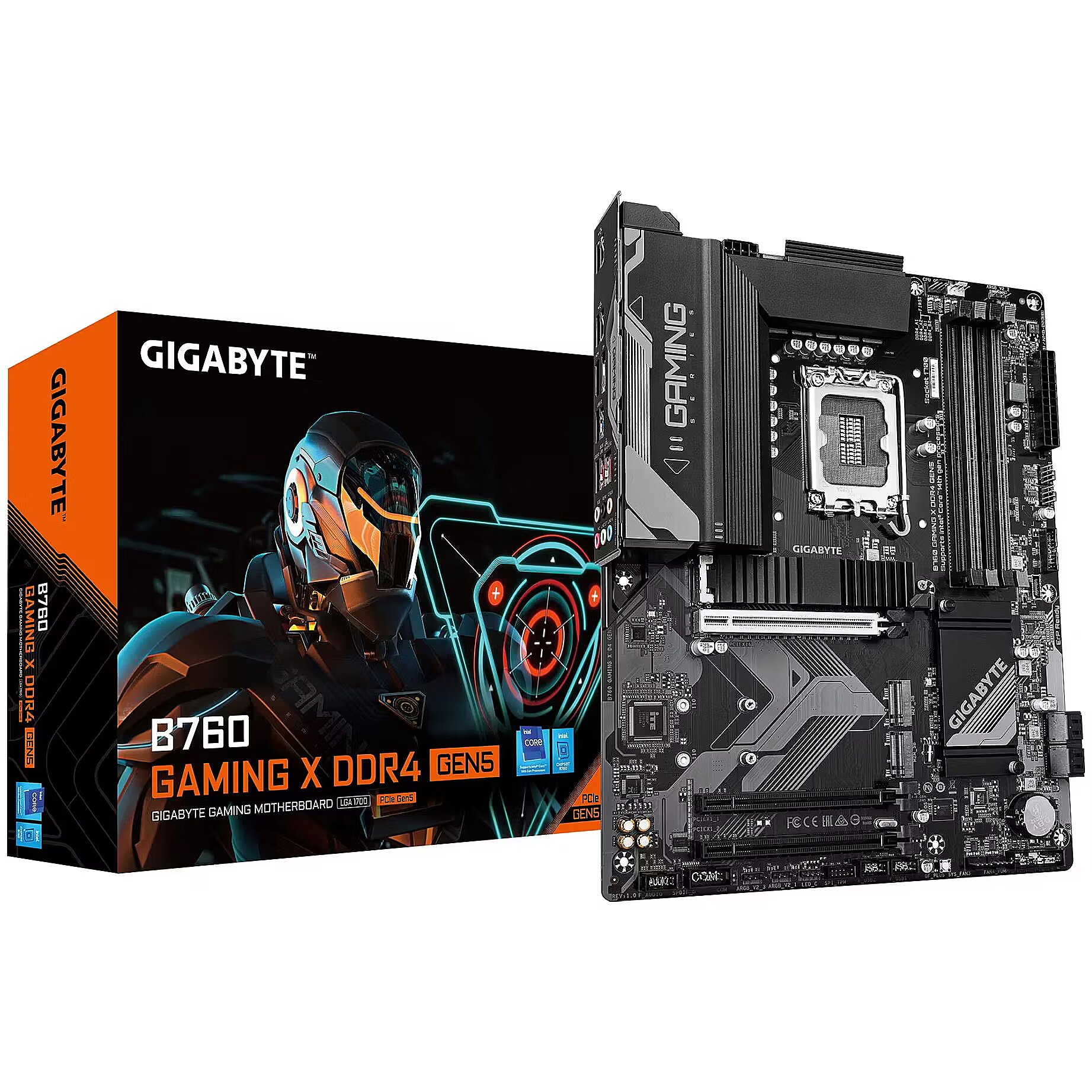Summary - GIGABYTE B760 GAMING X DDR4 GEN5 Motherboard - Supports 14th Gen. Intel Core CPUs, 8+1+1 phases VRM, up to 5333MHz DDR4 (OC), 3xPCIe 4.0 M.2, 2.5GbE LAN, USB 3.2 Gen 2. Processor manufacturer: Intel, Processor socket: LGA 1700, Compatible processor series: Intel® Celeron®, Intel Core i3 12th Gen, Intel Core i3 13th Gen, Intel Core i3 14th Gen, Intel.... Supported memory types: DDR4-SDRAM, Maximum internal memory: 128 GB, Memory slots type: DIMM. Supported storage drive interfaces: M.2, PCI Express 4.0, SATA III, Supported storage drive types: HDD & SSD, RAID levels: 0, 1, 5, 10. Maximum resolution: 4096 x 2304 pixels. Ethernet interface type: 2.5 Gigabit Ethernet, LAN controller: Realtek RTL8125