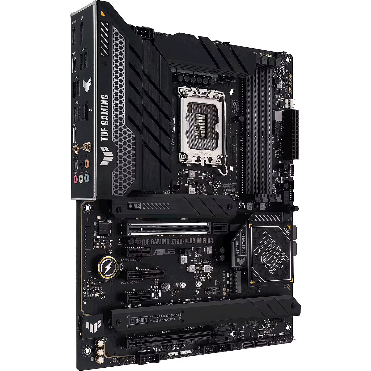 LongSummaryDescription - ASUS TUF GAMING Z790-PLUS WIFI D4. Processor manufacturer: Intel, Processor socket: LGA 1700, Compatible processor series: Intel® Celeron®, Intel® Core™ i3, Intel® Core™ i5, Intel® Core™ i7, Intel® Core™ i9,.... Supported memory types: DDR4-SDRAM, Maximum internal memory: 128 GB, Memory slots type: DIMM. Supported storage drive interfaces: M.2, SATA III, Supported storage drive types: HDD & SSD, RAID levels: 0, 1, 5, 10. Ethernet interface type: 2.5 Gigabit Ethernet, Top Wi-Fi standard: Wi-Fi 6 (802.11ax), Wi-Fi standards: 802.11a, 802.11b, 802.11g, Wi-Fi 4 (802.11n), Wi-Fi 5 (802.11ac), Wi-Fi 6 (802.11ax). Component for: PC, Motherboard form factor: ATX, Motherboard chipset family: Intel