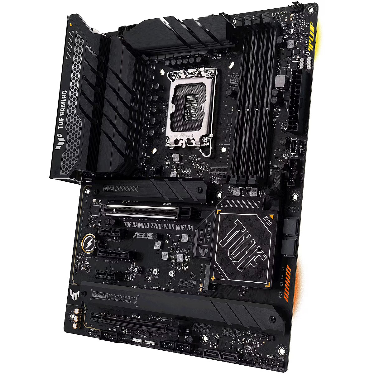 LongDesc - TUF GAMING Z790-PLUS WIFI D4 takes all the essential elements of the latest Intel® processors and combines them with game-ready features and proven durability. Engineered with military-grade components, an upgraded power solution and a comprehensive cooling system, this motherboard goes beyond expectations with rock-solid performance for marathon gaming. TUF GAMING motherboards also undergo rigorous endurance testing to ensure that they can handle conditions where others may fail. Aesthetically, this model incorporates an embossed nameplate and honeycomb design elements to reflect the dependability and stability that defines the TUF GAMING series.INTELLIGENT CONTROLThe TUF GAMING Z790 motherboards pack flexible tools to tune every aspect of your system, enabling performance tweaks to expertly match the way you play.AI Cooling IIBalance the thermals and acoustics of any build with a single click. An ASUS-exclusive algorithm slashes unnecessary noise while running a quick stress test, and then it monitors CPU temperatures to dynamically adjust fans to optimal speeds.All-Around Energy EfficiencyThe Power Saving function contains several settings that can easily optimize power consumption and maximize energy savings. You can enable a CPU power limit, darken Aura lighting, and set the fan profile to a power saving mode. You can also toggle the Power Saver plan that is built into Microsoft Windows.UEFI BIOSThe renowned ASUS UEFI BIOS provides everything you need to configure, tweak and tune your system. It offers intelligently simplified options for PC DIY beginners and comprehensive features for seasoned veterans.Armoury CrateThe ASUS-exclusive Armoury Crate software centralizes control of all supported gaming products. A single intuitive interface lets you customize RGB lighting for all compatible devices and link them to Aura Sync for unified illumination. It also displays information from, and enables control of, a growing hardware ecosystem. Armoury Crate also enables easy product registration and features a news section to keep you in touch with the gaming community.ROCK-SOLID PERFORMANCEWith upgraded power delivery and comprehensive cooling options to fuel the latest Intel CPUs, plus support for DDR4 memory and PCIe 4.0 storage, the TUF GAMING Z790-PLUS WIFI D4 is the perfect foundation for your next Intel battle rig.DrMOS Power Stages16+1 power stages are each rated to handle 60 amperes, combining high-side and low-side MOSFETS and drivers into a single package to deliver power, efficiency and stable performance for all compatible Intel processors.Six-Layer PCB DesignThe multi-layered printed circuit board design quickly dissipates heat around the voltage regulators to improve overall system stability and provide the CPU with more overclocking headroom.8+4 Pin ProCool Power ConnectorsCompared to most power inputs, ASUS ProCool connectors are built to tight specifications to ensure full contact with PSU power cables. The resulting lower impedance helps prevent hotspots and connector failure.TUF ComponentsTUF ChokesCertified military-grade TUF chokes deliver rock-solid power to the CPU, improving system stability.TUF CapacitorsThe TUF 5K black metallic capacitors provide 52% wider temperature tolerance and a 2.5X-longer lifespan than standard motherboard capacitors.Digi+ VRMThe integrated Digi+ voltage-regulator module (VRM) is one of the finest in the industry, optimized for ultra-smooth and ultra-clean power delivery to the CPU at all times.DRAM Overclocking PerformanceDDR4 OC 5333Improvements to trace routing design provide the latest Intel processors with enhanced access to memory bandwidth. ASUS OptiMem II technology carefully maps memory signal pathways across different PCB layers to reduce path distance, and it adds shielding zones that significantly reduce crosstalk.PCIe 4.0 SupportThe four PCIe 4.0 M.2 slots support up to two 22110 devices and also provide NVMe SSD RAID support for incredible performance potential. Create a RAID configuration with up to four PCIe 4.0 storage devices to enjoy the fastest data transfer speeds.Cooler By DesignThe TUF GAMING Z790-PLUS WIFI D4 is armed with an enlarged VRM heatsink, while three M.2 slots and the PCH feature heatsinks that provide the perfect balance of mass and surface area for heat dissipation.Comprehensive Fan ControlsTUF GAMING Z790 motherboards feature comprehensive fan controls that can be configured via the Fan Xpert 4 utility in Armoury Crate or via the award-winning ASUS UEFI BIOS.ConnectivityThe TUF-GAMING Z790-PLUS WIFI D4 reaches new heights of performance potential with the latest version of PCI Express, while an arsenal of USB ports includes three Type-C connections, and Thunderbolt 4 expands compatibility and bandwidth even further.EASY PC DIYThe TUF GAMING line offers easy setup for all builders. The TUF GAMING Alliance ecosystem grants compatibility, while Armoury Crate has Fan Xpert 4, hardware info, Two-Way AI Noise Cancelation, RGB options and peripheral settings. This platform has intuitive tools to build and optimize dream rigs.Build With ConfidenceTUF GAMING Alliance is a collaboration between ASUS and trusted PC component brands to ensure compatibility across a wide range of parts, such as PC cases, power supplies, CPU coolers, memory kits and more. With new partnerships and components being added regularly, the TUF GAMING Alliance will continue to grow even stronger.SafeSlot & SafeDIMMSafeSlot is a reinforced metal sheath added to a PCIe slot to keep a card firmly installed. Because PCIe 5.0 is two times faster than PCIe 4.0, ASUS enhanced SMT manufacturing processes for the faster SafeSlot―all to ensure users get the highest-possible data speeds. In addition, the ASUS SafeDIMM sheath is added to support and protect memory modules on select ASUS motherboards, empowering you to insert modules with speed, accuracy and confidence.ESD GuardsESD Guards prolong the life of components while preventing d