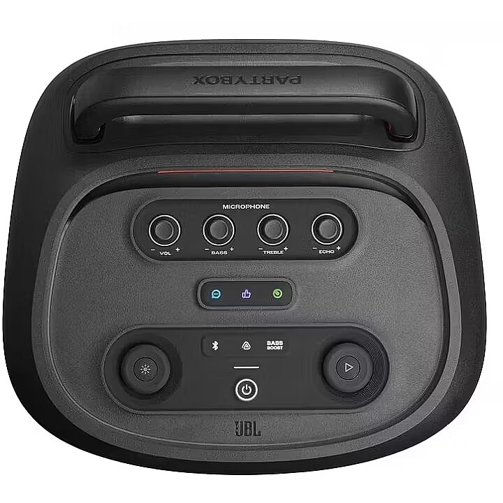 AI Sound Boost — automātiska skaņas optimizācija Līdz 15 stundām akumulatora darbības + iespēja to nomainīt ilgākām ballītēm Dinamisks LED gaismas šovs IPX4 ūdensnoturība — aizsardzība pret šļakatām XLR ieeja mikrofonam vai ģitārai Jauda (RMS): 400W Frekvenču diapazons: 40 - 20000 Hz USB: Ir 3.5 mm (AUX): Ir