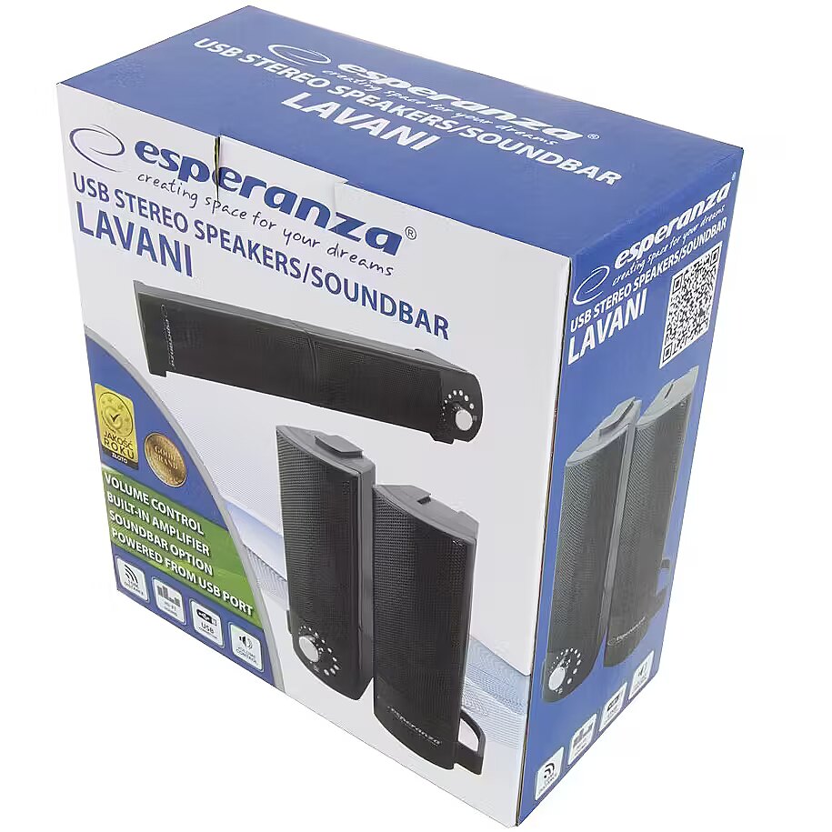 Apraksts - Skaļruņi USB 2.0 LAVANI Augstas kvalitātes stereo skaļruņi portatīvajiem un galda datoriem. Tie nodrošina skaidru un dabisku skaņas kvalitāti. Tiem ir aizdare, kas ļauj tos savienot un izveidot skaņu joslu. Tie labi darbojas ar visiem datoru blokiem ar skaļruņiem un USB izejām. Tiem ir iebūvēta skaļuma regulēšanas funkcija. To ražošanā izmantotie augstas kvalitātes materiāli aizsargā pret statisko elektrību un elektromagnētiskajiem traucējumiem.