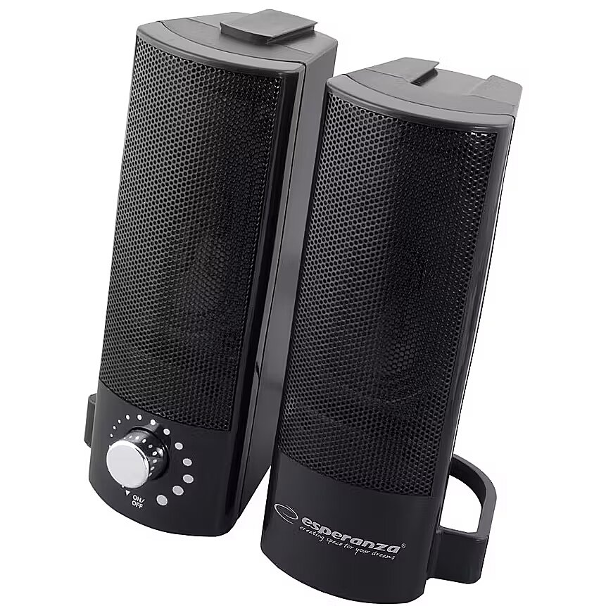 High-quality stereo speakers for notebooks and desktops. They provide clear and natural sound quality. They have a catch that allows them to be connected and to create a soundbar. They work well with all computer units with speaker and USB outputs. They are equipped with built-in volume control. High-quality materials used for their manufacture protect against static electricity and electromagnetic interference.