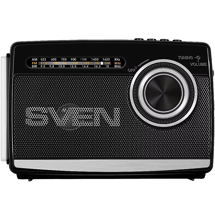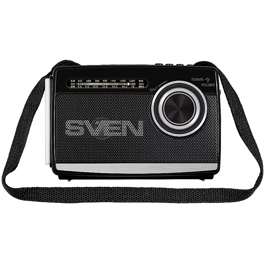 Produkta apraksts - Skaļrunis SVEN SRP-155, melns (3 W, Bluetooth, FM/AM/SW, USB, microSD, zibspuldze, akumulators)