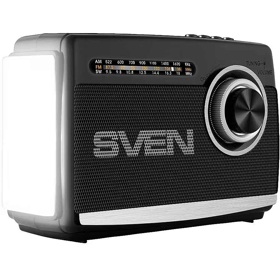 ProductDescription - Speaker SVEN SRP-155, black (3W, Bluetooth, FM/AM/SW, USB, microSD, flashlight, battery)