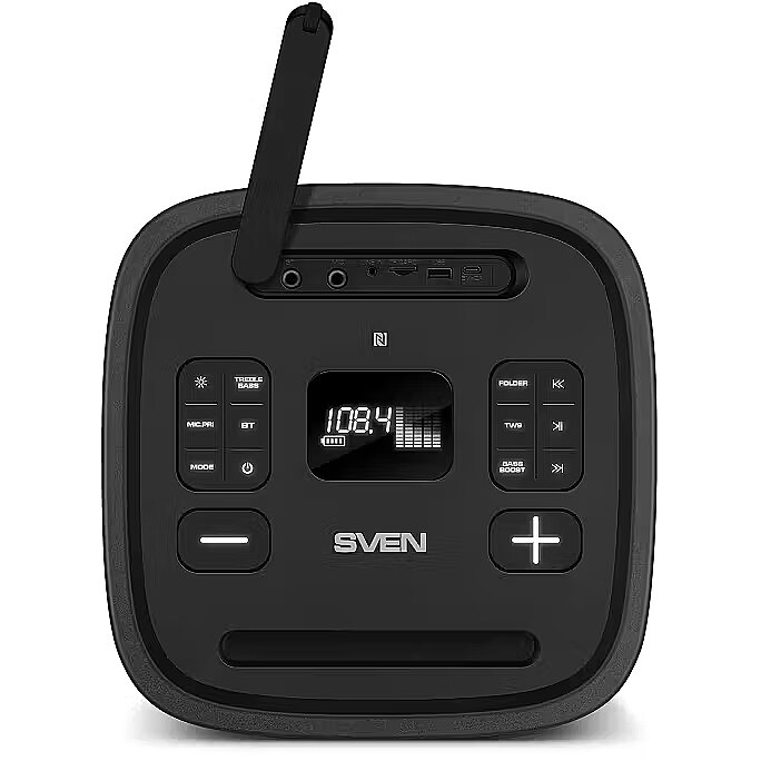 ProductDescription - Speaker Party Box SVEN PS-1250, black (300W, TWS, IPx4, Bluetooth, FM, USB, microSD, LED-display, 13500mAh)
