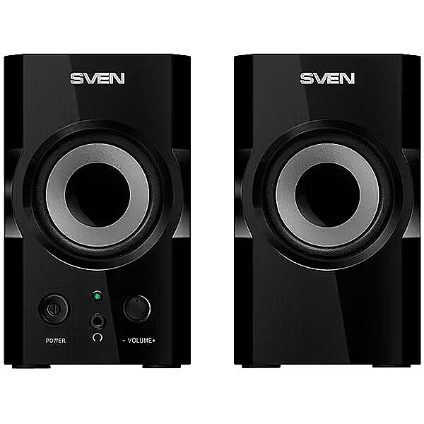 Produkta apraksts - SVEN SPS-606 2x3W, austiņu priekšējā ligzda, priekšējā barošanas poga un skaļuma regulēšanas poga