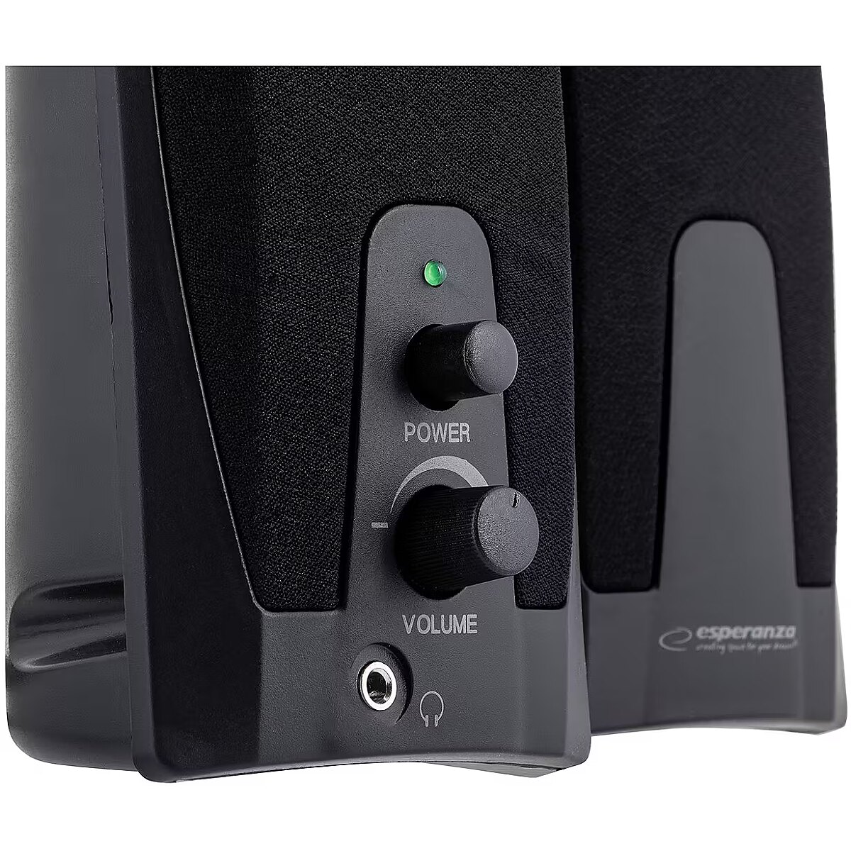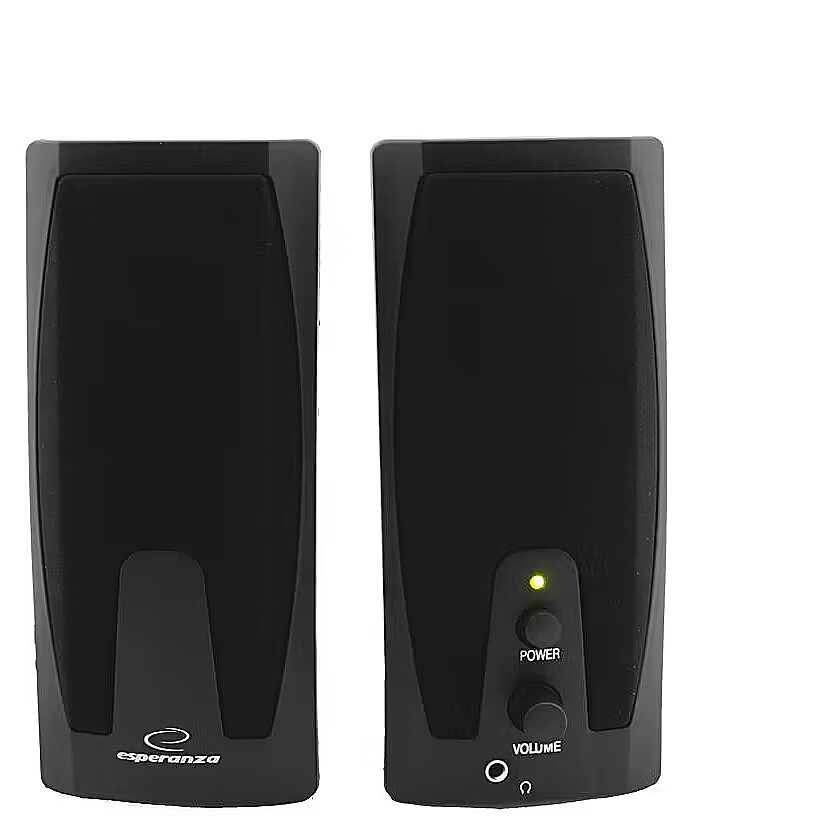 Description - Esperanza Speakers 2.0 Giocoso EP110 - 2 x 3WHigh quality stereo speakers for laptops and desktops. Guarantee a clean and natural sound quality. The elegant design makes it blend in on your desk with LCD monitors and other accessories. Works with all computers having the speaker output, CD players, MP3 players, Walkmans, video games, etc.. They have a built-in volume control and headphone output. High quality materials used to manufacture protect against static electricity and from generating electromagnetic interference.