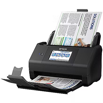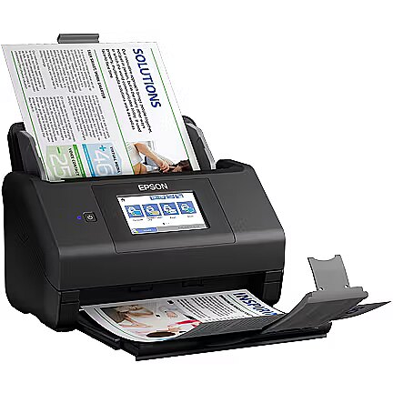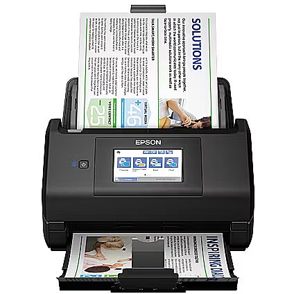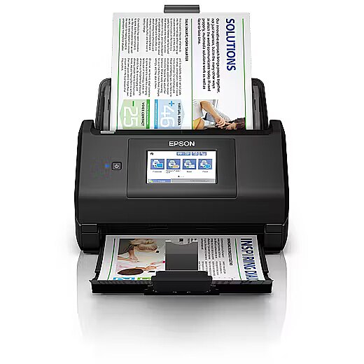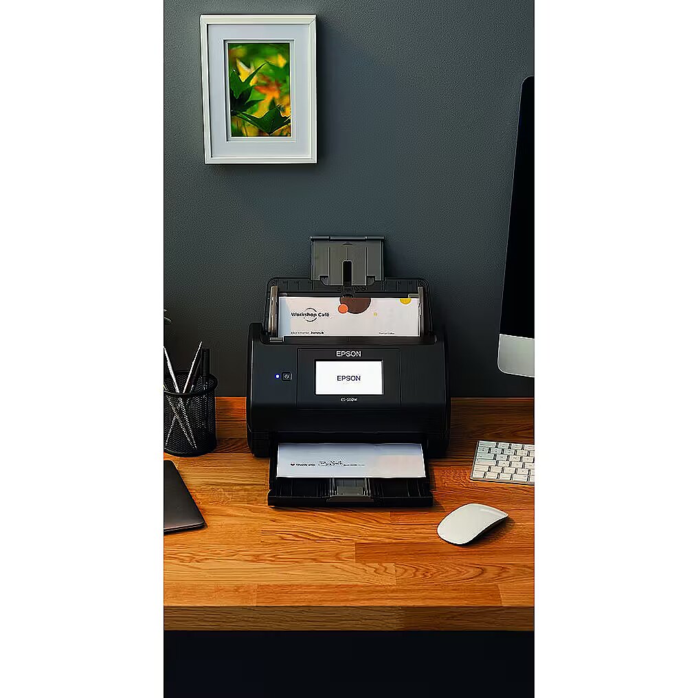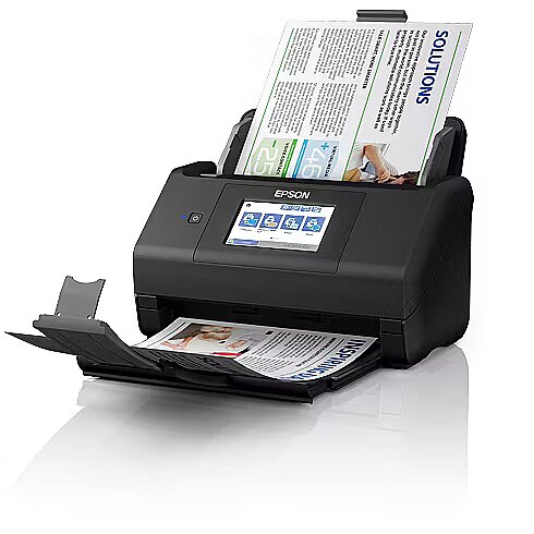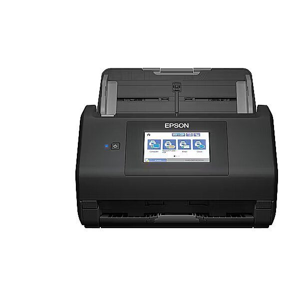 LongDesc - Save time with this easy-to-use, wireless, auto-sheet feed scanner with 10.9 cm touchscreen and scan direct features.Keep your business organised with this high-speed, A4, auto-duplex scanner with auto-sheet feed. Using the large 10.9cm screen and wi-fi you can save your documents directly to where they need to be. Work fast and smart with customisable presets.No computer necessaryScanning made easy: with the 10.9cm touchscreen you can scan wirelessly direct to network and cloud folders, email addresses, or attached USB memory stick - no computer required.Save timeDouble-sided scanning in a single pass, 100-sheet auto document feeder and scan speeds of 35ppm/70ipm mean you'll be able to complete your work quickly and save time.Flexible scanningScan direct from the scanner’s touchscreen and create customisable presets and layouts without the need for a computer. You can also scan and share using your PC or Mac, with Epson ScanSmart software or use your phone or tablet with the Epson Smart Panel app.IntelligentIntelligent colour and image adjustments - auto crop, skew correction, blank page and background removal with Epson’s Image Processing Technology.Peace of mindWith inbuilt sensors for paper jams, double-feeding, and dirt-on-glass detection, all documents are kept safe and scanned to the highest quality.VersatileScan anything between 27-409 gsm, including receipts, business cards, plastic cards and more, producing high quality digital files.