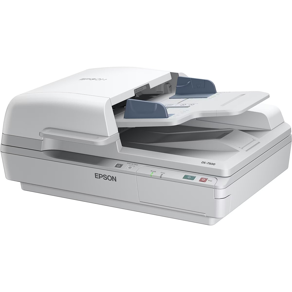 - Eco-friendly: ENERGY STAR-qualified. Device Type A4-Einzugsscanner Interface(s) USB 2.0 Scan Feed maximum Width 1016 mm Maximum Height 216 mm Colour Mode Colour Depth internal 48 Bit Outputs 24 Bit Gray Mode Grayscale internal 16 Bit Outputs 8 Bit Maximum Resolution optical: 1200x1200 DPI Template Processing Feeder / ADF: Yes Capacity (Sheets): 100 Platen Glass Yes Power Consumption Operation: 44.5 watt(s) Stand-By: 1.6 watt(s) Software: Windows: ABBYY FineReader Sprint, Epson Document Capture Pro, Epson Scan Macintosh: ABBYY FineReader Sprint, Epson Document Capture Pro, Epson Scan, Epson Event Manager Operating Volume (pages/month) 90000 Weight 9.8 kg Product dimensions 495x217x360 mm