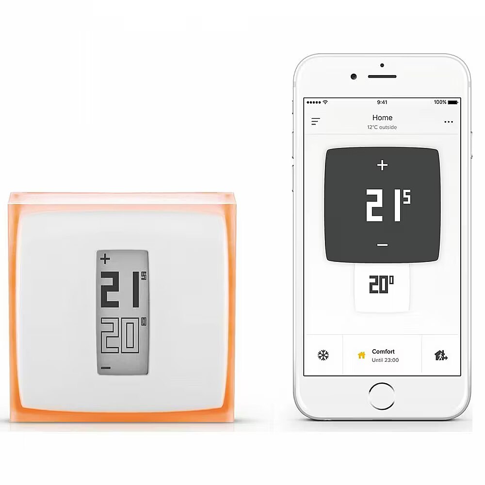 LongDesc - Heating schedule: easy energy savings Heat your home to just the right temperature and only when you need it. The Netatmo Smart Thermostat needs the answers to just five questions to create a heating schedule that suits your lifestyle. It’s that easy! It turns the heating down while you’re at work and makes sure it’s warm when you get home. The schedule includes Absent and Frost Protection options to adjust the heating if you’re away for longer periods. A Smart Thermostat that adapts and keeps you updated in real time Even when the weather changes, your Thermostat stays smart. The Auto-Adapt feature adjusts your heating based on the outdoor temperature and your home’s insulation. The aim is to guarantee the right temperature at the right time. Set it to 20°C and that’s exactly the temperature it will be when you get home! Plus, the Auto-Care feature lets you know when the batteries are running low or it detects a problem. Control your smart heating from a distance Stay in control of your Netatmo Smart Thermostat, wherever you are, using the Energy app on your smartphone, tablet or computer. Heading home? For a warm welcome, you can turn on the heating as you leave the office. You can also control the Thermostat manually when you’re home. Effortless voice-controlled heating Is it bath time for the kids? "Siri, turn up the bathroom heating to 22°C!" Are your guests too hot? "OK Google, turn the heating down in the living room to 18°C." Feeling chilly? "Alexa, make the bedroom 2 degrees warmer!" Your Netatmo Smart Thermostat is compatible with Apple HomeKit, Alexa and Google Assistant, so you can control it with your voice. It’s no sooner said than done! Consumption information and advice The Netatmo Smart Thermostat gives you everything you need to understand your heating habits and keep an eye on your energy usage. You can view your data history - indoor temperatures, heating schedule, boiler activity phases - on your smartphone or computer. And you’ll receive a personalized Energy Savings Report every month. The Thermostat lets you adapt your heating schedule to your lifestyle! Quick and easy to install All Netatmo equipment is designed to be easy to install and use. The Smart Thermostat is no exception! It takes less than an hour to install. You don’t need to be a technical expert: our step-by-step guides and videos walk you through the process. The thermostat that adapts to your home The Netatmo Smart Thermostat is compatible with most boilers, whichever energy you use: electricity, gas, fuel oil, wood or heat pump. Not sure whether yours is a match? Visit check.netatmo.com. You can install your mobile Thermostat anywhere in your home. Designed by Philippe Starck to go with your decor Your Smart Thermostat is designed to make your life easier - not harder! With a minimalist design by Philippe Starck and a choice of four adhesive strips in different colors, your Thermostat blends into your home decor. Ideal temperature in each room Don’t want to overheat an empty bedroom but prefer to take your morning shower in a warm bathroom? We feel the same way! Only heat where you need it, when you need it, at the temperature that’s right for you. How? By using your Thermostat with Additional Smart Radiator Valves. Fit them on up to 20 radiators to set the temperature room by room.