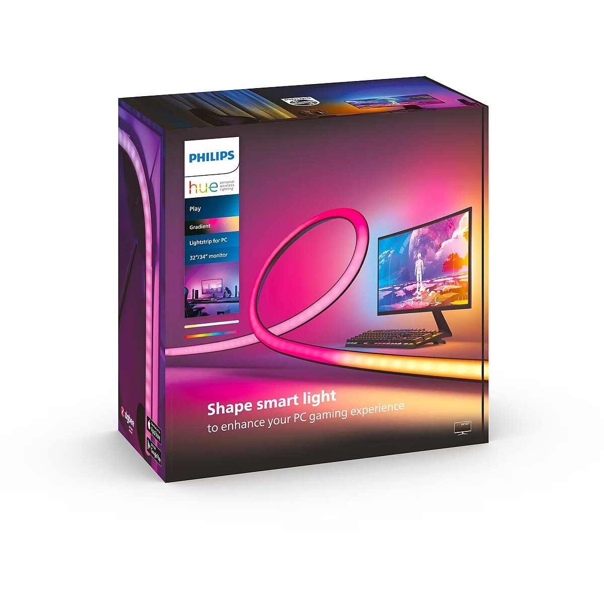 MediumDescription EN - Get a light bar with reactive colored light and smooth color changing for your gaming system! Attach the Play gradient lightstrip to the back of a 32-34" monitor with the included mounts. Start syncing with the Hue Sync desktop app to see what's happening on the screen reflected in the light.