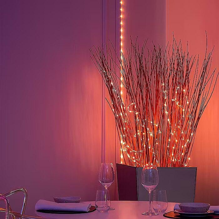 MediumDescription EN - Add versatile light and color to your space with smart LED lights Twinkly Dots. Whether you want cool but subtle lighting decorations, are tricking out your gaming room, or are planning a romantic dinner, create just the right vibe with Dots. Available in multiple lengths and with various numbers of bulbs, this miniaturized, flexible string of premium, app-controlled, addressable LEDs with a flat, matte head were designed for extraordinary brightness and color quality in over 16 million colors. Perfect for use both indoors and outdoors.