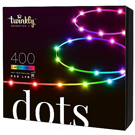 MediumDescription ET - Twinkly Dots on imeilus valgusriba, millel on värvilised RGB LED valgustid ning nutikad tehnoloogiad. Valgusteid on võimalik juhtida üle WiFi võrgu või kasutades Bluetooth'i - loo täpselt selline valgustus, nagu Sulle endale meeldib. Kasuta erinevaid efekte ja animatsioone. Valgustust on võimalik ka muusikaga sünkroniseerida, kasutades selleks Twinkly Music Dongle muusikaadapterit (müügil eraldi). Razer Chroma™ RGB ja OMEN Light Studio ühilduvus on koheselt olemas. Twinkly Dots sobib kasutamiseks nii jõuludel kui ka aastaringselt. Twinkly töötab ka Apple Siri, Google Assistant ja Amazon Alexa virtuaalsete assistentidega. Sel on IP20 ilmastikukindlus, seega sobivad tuled kasutamiseks siseruumides. Tulesid on võimalik omavahel ühendada teiste Twinkley RGB tuledega (kokku kuni 4000 LED pirni või 10 seadet).