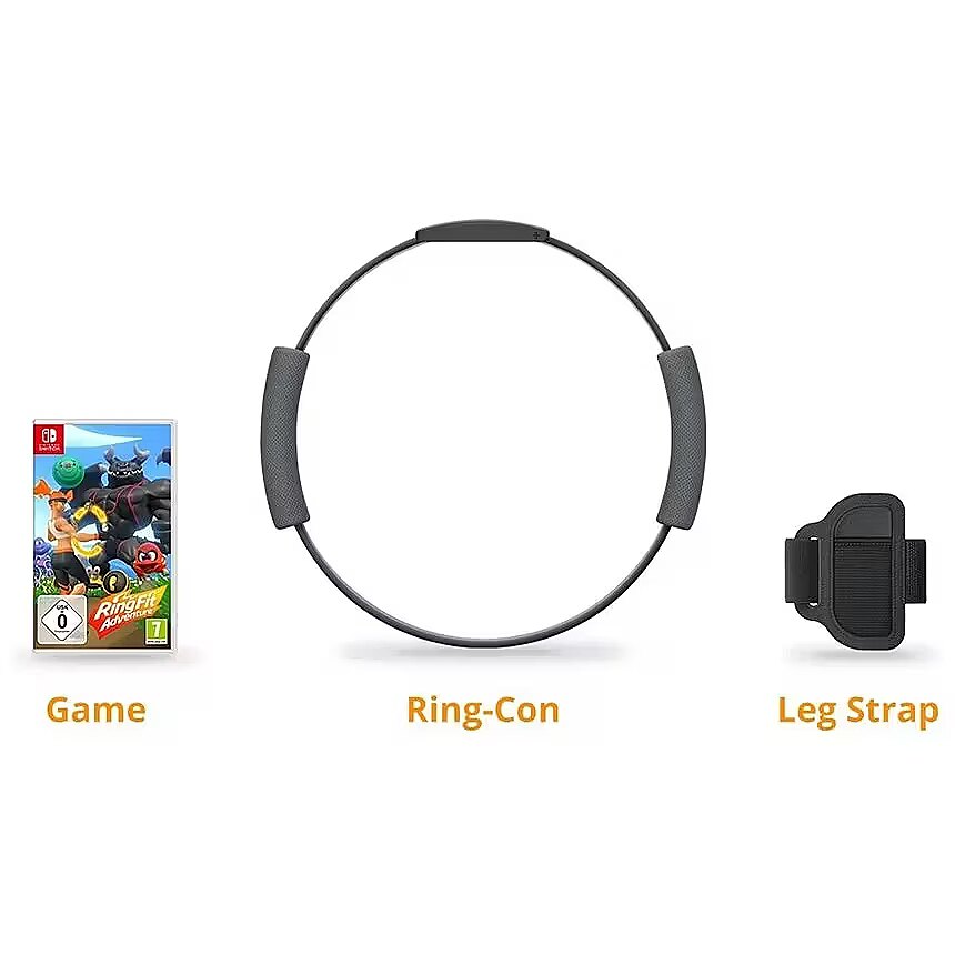 LongDesc - Explore a fantasy adventure world to defeat a bodybuilding dragon and his minions using real-life exercises!Traverse grass-swept plains by jogging in place, attack enemies with overhead shoulder presses, and refill your health meter by striking some yoga poses. Two new accessories, the Ring-Con and Leg Strap, measure your real-world actions and help turn them into in-game movements. With additional minigames and customizable workout routines, Ring Fit Adventure is great escape for players of all skill levels and schedules.In Adventure mode, defeat enemies with attacks based on real-world exercises as you traverse more than 100 levels in over 20 worlds. As you work through each level (and possibly work up a sweat), you’ll earn experience points. Between fights, you may encounter some unusual methods of transportation such as squat-powered launch pads. Then, pass around the Ring-Con and leg strap accessories and select from a few minigames: break boxes with gusts of air, craft pottery using squats, and more.