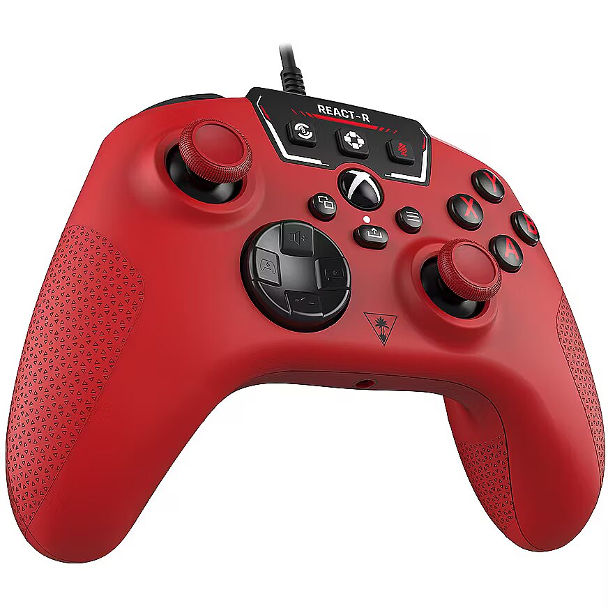 LongDesc - React faster with the Turtle Beach® REACT-R™ Controller, officially licensed for Xbox Series X, Xbox Series S, Xbox One & Window 10 & 11 PCs. Plug in any 3.5mm headset and instantly upgrade your audio with quick-access controls for Superhuman Hearing®, game & chat volume balance, and mic mute. Play longer and stay in control thanks to an ergonomic handle shape and textured grips, handles and triggers. Two mappable quick-action buttons on the backside of the controller let you customize your controls for quicker reactions. Feel the rumble of explosions, or the recoil of gunshots with vibration feedback in the handles and triggers3.5MM HEADSET CONNECTIONTake advantage of proven Turtle Beach® audio functions by plugging in any 3.5mm connected headset.VIBRATION FEEDBACKDual rumble motors in the handles and triggers enhance immersion for realistic, next-gen gameplay.RESPONSIVE CONTROLSReact faster with textured triggers and bumpers, an accurate 8-way D-pad, and smooth thumbstick movement.ERGONOMIC TEXTURED GRIPSTextured handle surfaces and a comfortable, fatigue-free shape keep your hands firmly in place while reducing strain over long gaming sessions.OFFICIALLY LICENSED FOR XBOXThe REACT-R™ Controller is built to dominate on Xbox Series X, Xbox Series S, Xbox One and Windows PCs.WIRED TO WINEquipped with a detachable 8ft./2.5m cable with USB-C connector.GAME-ENHANCING AUDIO CONTROLSQuick-access audio controls including Superhuman Hearing®, game and chat volume balance & mic mute right at your fingertips.SUPERHUMAN HEARING®From quiet footsteps sneaking up, to enemy weapon reloads, Turtle Beach® exclusive Superhuman Hearing® sound setting lets you hear every detail for the ultimate gaming audio advantage.TWO MAPPABLE QUICK-ACTION BUTTONSSpeed up your response with two mappable buttons that you can set to your preferred function.
