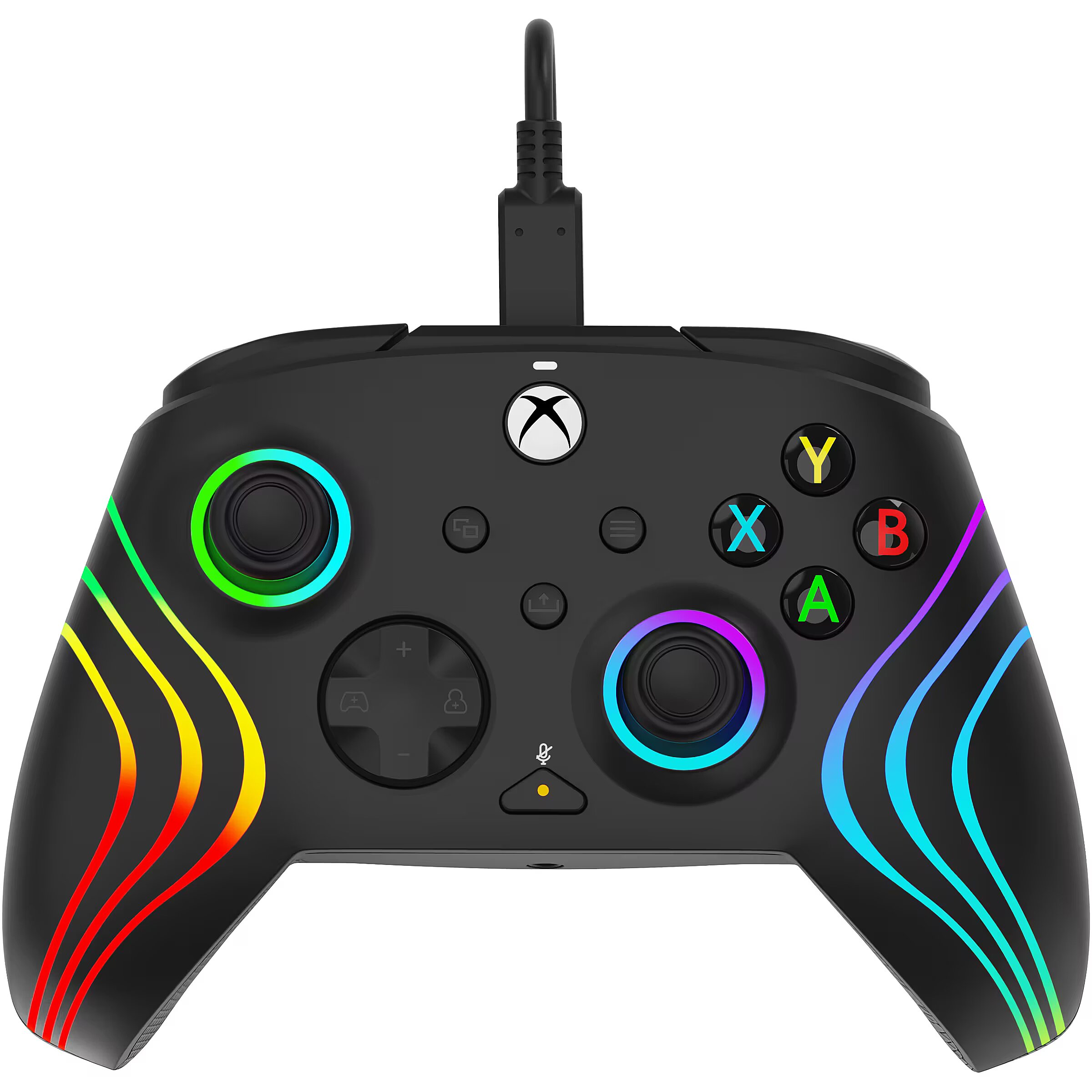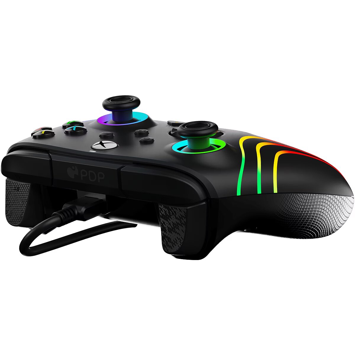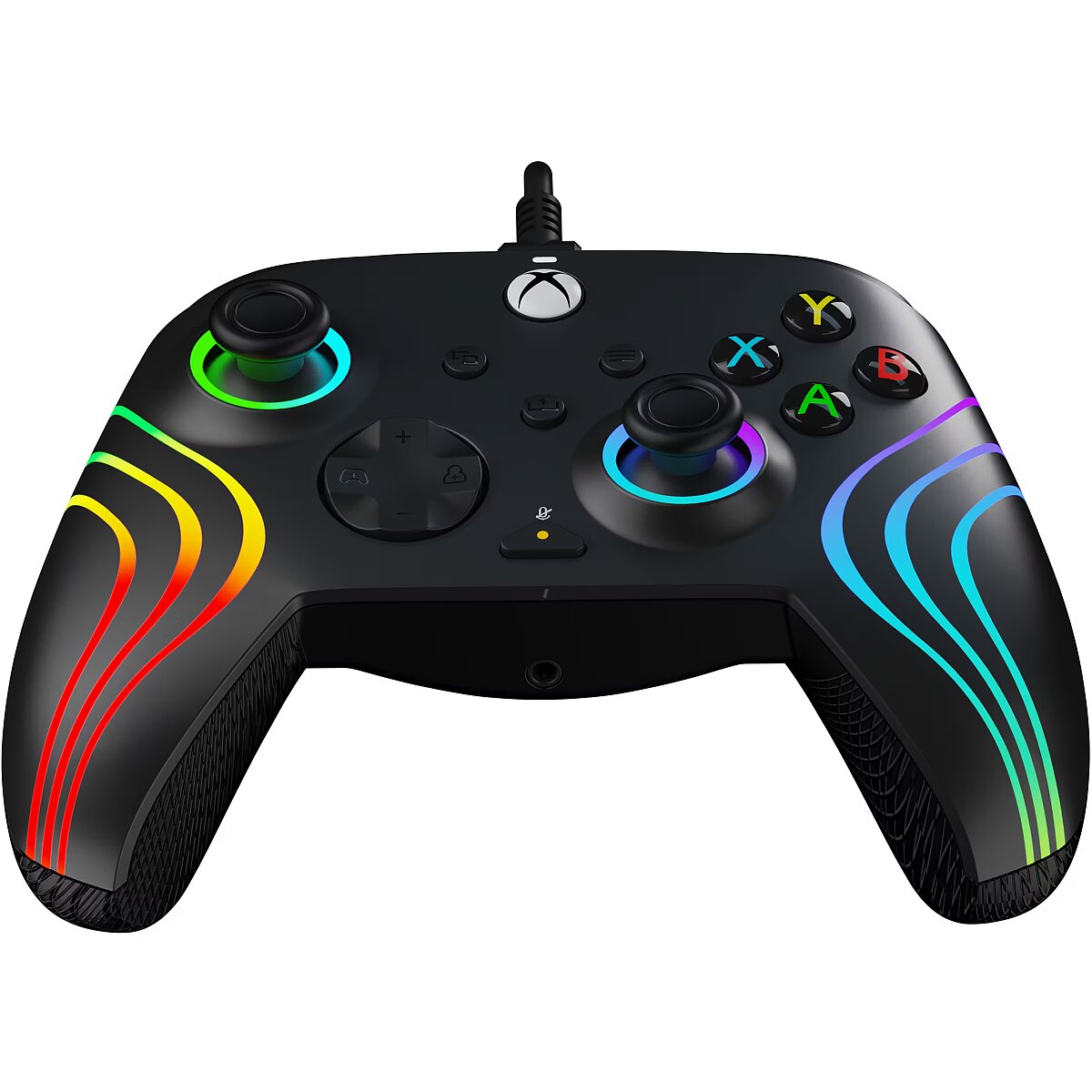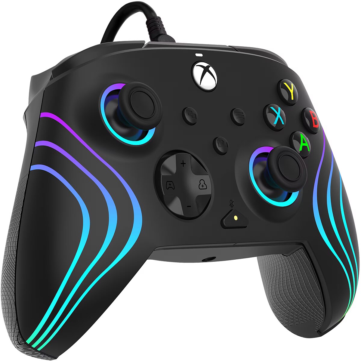 LongDesc - See your gaming in a new light with the Black Afterglow Wave Wired Controller for Xbox! Customize your gameplay, create colorful displays, and more with this officially licensed controller.Make waves with the millions of colors and combinations of the Afterglow Wave Wired Controller's RBG lights and settings. Cycle through different lighting effects and colors using the ""function"" button or download the free PDP Control Hub app to change the eight RGB lighting zones and more. Customize your controller even further, in the app, with countless options like re-mapping buttons, reconfiguring triggers, or adjusting deadzones. Take down the ops quickly and efficiently by mapping controller functions to the two programmable back buttons. Use the built-in volume controls on the D-pad, and quick mic mute, to make rapid-fire adjustments without ruining your immersion. Get improved accuracy and all-day comfort with the controller’s textured grips and triggers. Plug in the included, 8-foot USB-C cable and start showing off your true colors.Get 1 month free of Xbox Game Pass Ultimate for access to over 100 high-quality games!
