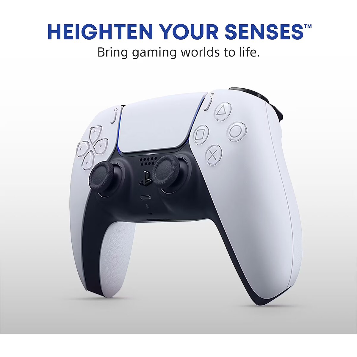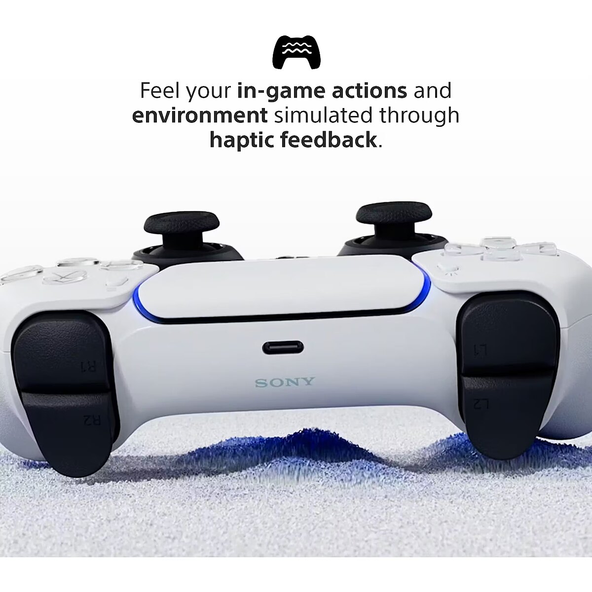 LongDesc - DualSense™ Wireless ControllerDiscover a deeper gaming experience with the innovative new PS5™ controller.Heighten Your Senses™The DualSense wireless controller for PS5 offers immersive haptic feedback, dynamic adaptive triggers and a built-in microphone, all integrated into an iconic design.Adaptive TriggersExperience varying levels of force and tension as you interact with your in-game gear and environments. From pulling back an increasingly tight bowstring to hitting the brakes on a speeding car, feel physically connected to your on-screen actions.Haptic FeedbackFeel physically responsive feedback to your in-game actions with dual actuators which replace traditional rumble motors. In your hands, these dynamic vibrations can simulate the feeling of everything from environments to the recoil of different weapons.A gaming icon in your handsTake control with an evolved, two-tone design that combines an iconic, intuitive layout with enhanced sticks and a reimagined light bar.Play for longer on more devicesKeep your PS5 controllers fully charged and ready to go, whether you're playing on your gaming setup or moving away from the TV with PS Remote Play.