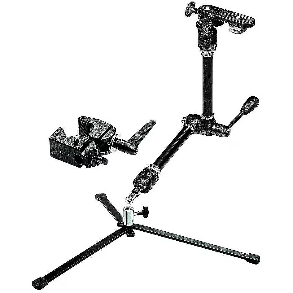 description_en - Articulated arm with centre lever to lock all 3 movements. Supplied with: Camera/Umbrella Bracket 143BKT, Super Clamp 035, Backlite Base 003. Camera attachment: 1/4" screw Length: 53cm Material: aluminium Maximum load: 3 kg Weight: 2,55 kg
