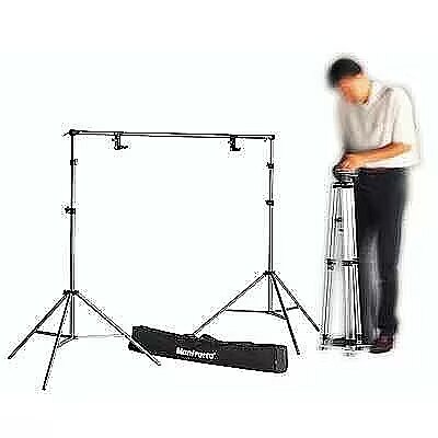 description_en - Designed to support rolls or sheets of background paper or any other background material, such as muslins, that fits into a compact case. Weight: 4.2kg. This kit comprises of: - 1 x MN272 three section Telescoping Cross Bar - Length 112cm (44") to 298cm (117") 2 x MN052 243cm (8") Light Stands. 2 x MN275 Mini Spring Clamps. 1 x Carry Bag.