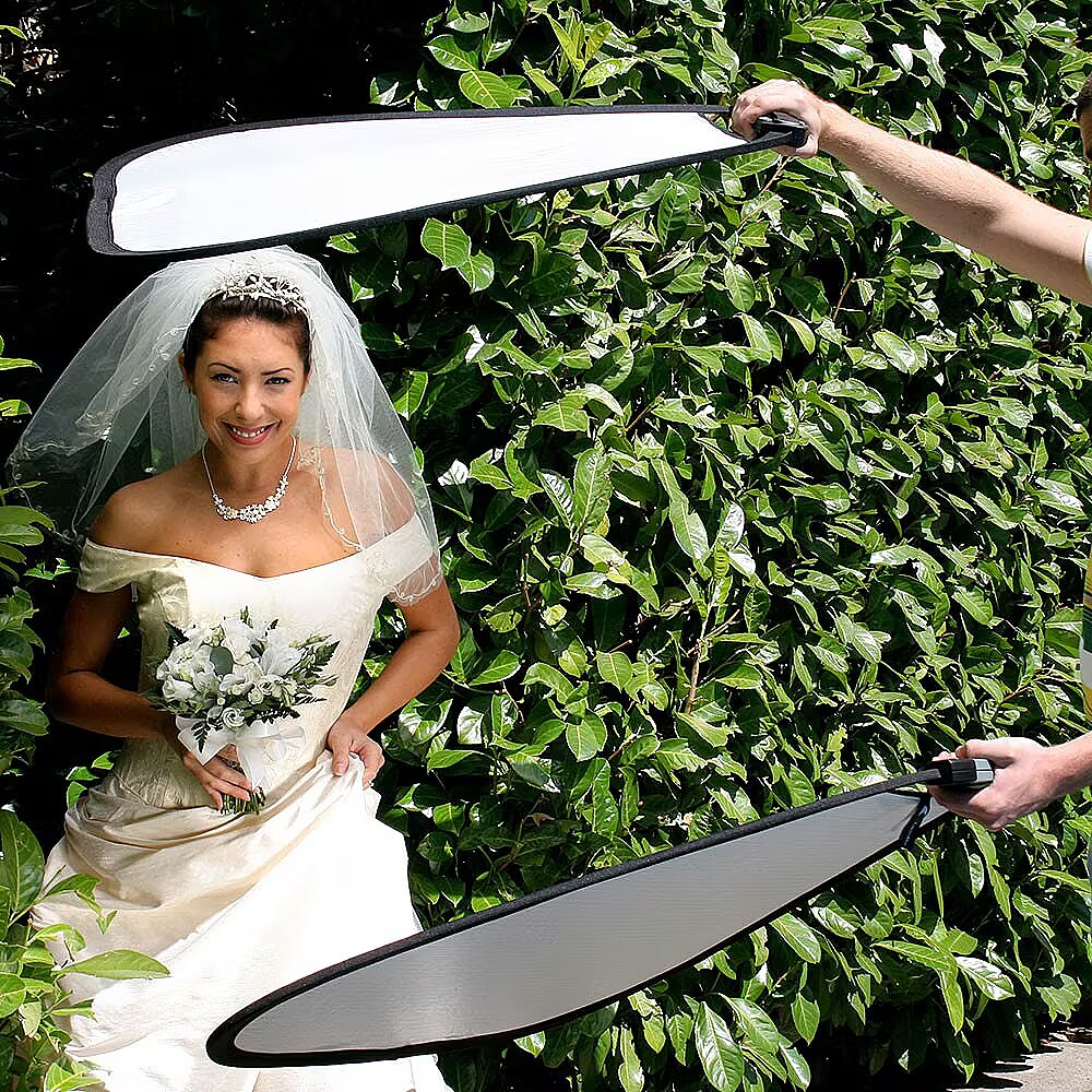 description_short_ru - Lastolite praktiskais atstarotājs Trīsstūrveida, divpusējs, 75 cm Aprīkots ar atbalsta rokturi Balts - izkliedē dabisko gaismu Zelts - mīkstina krāsas un ādas toni.