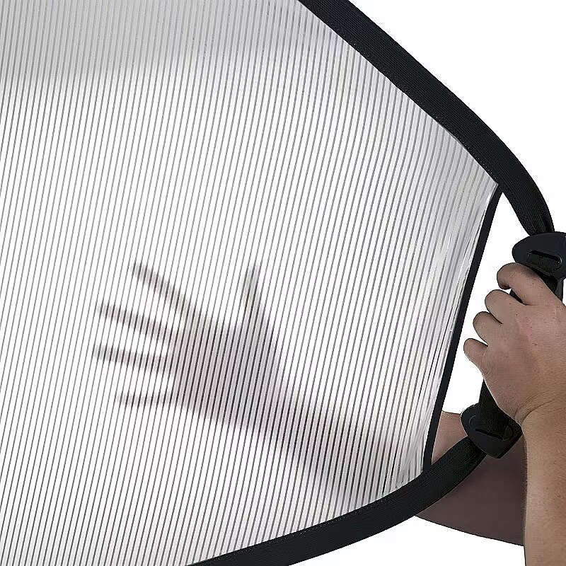 description_lv - Manfrotto TriGrip Difflector 120 cm Manfrotto TriGrip atstarotāji ir aprīkoti ar profilētu rokturi un stiprinājuma siksnu, kas ļauj vēl precīzāk novietot atstarotāju ar vienu roku, un tas nozīmē, ka gaismu var novirzīt uz visām neērtajām vietām, piemēram, zem zoda un acīm, bez statīva vai balsta. Stiprinājuma siksnas ļauj arī atbalstīt atstarotāju, neskarot rokturi, tādējādi samazinot spiedienu uz plaukstu un pirkstiem, ja to turat rokās ilgāku laiku. Šī ir standarta (120 cm) 2 stop difuzora versija. Tas saliekas līdz tikai 51 cm, un tam ir pievienota pārnēsāšanas soma.