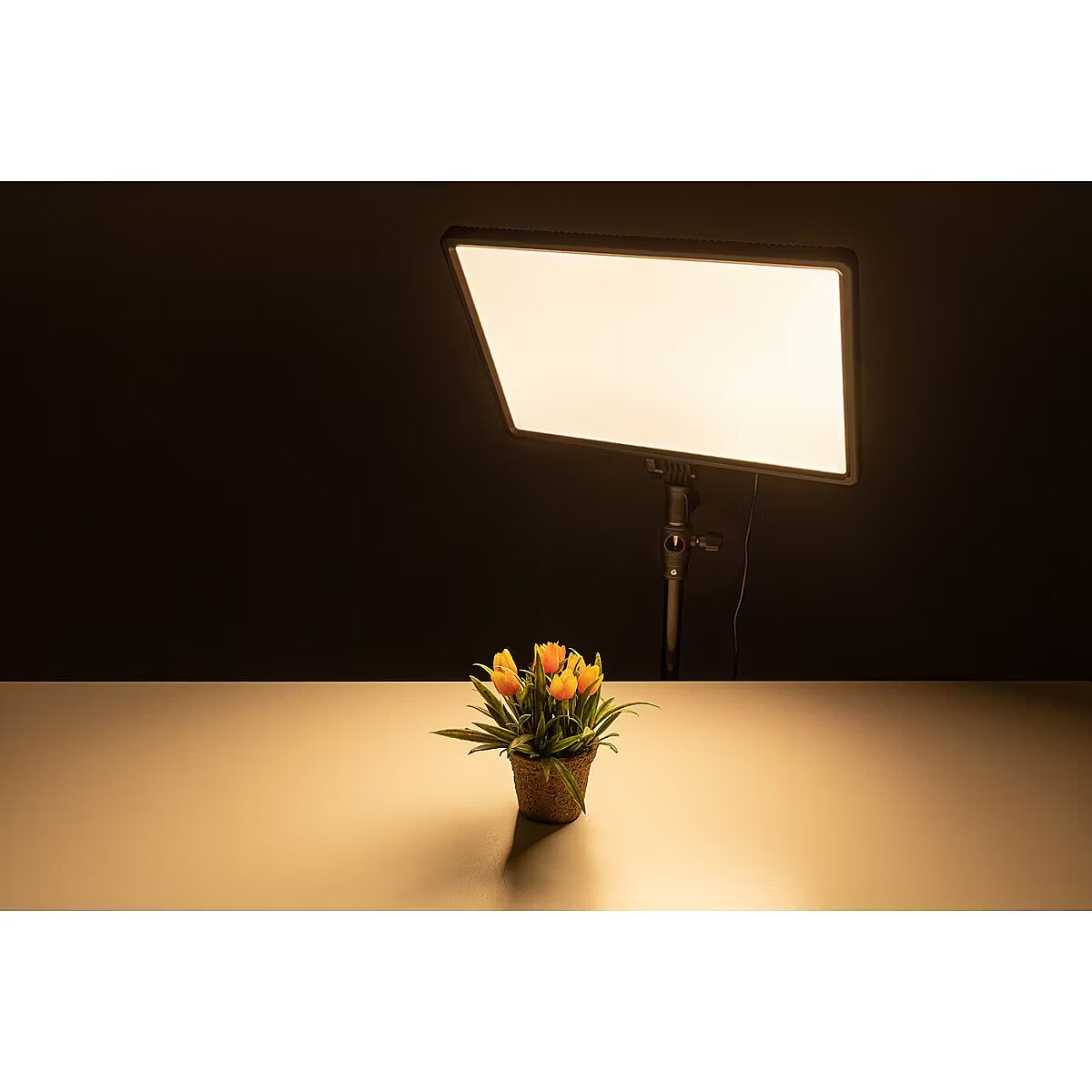 description_en - This Helios Studio surface light offers an even LED permanent light with a large and softly illuminated area. versatile working, either in the studio or on the move, is easily possible thanks to a variable power supply. (Via mains adapter or 2 additionally available batteries). Exact and stepless adjustment of brightness and color temperature for photo and video recordings. Output power: 50 W Light intensity: 1000 lux/m Brightness: adjustable 0–100% Color temperature range: 3200–5600 K CRI: 96 & TLCI: 97 Lifetime LEDs: 30,000 hours Connection: Ø16 connector