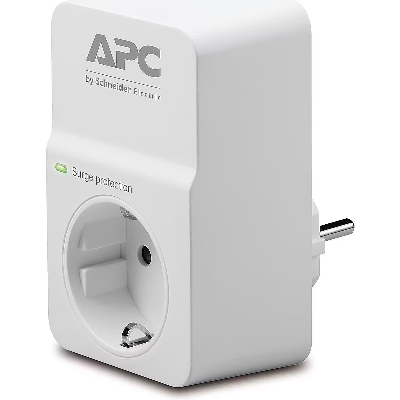 LongSummaryDescription - APC SurgeArrest. Surge energy rating: 918 J, AC outlets quantity: 1 AC outlet(s), AC outlet types: Type F. Product colour: White, Power plug type: Type F (CEE 7/4). Weight: 130 g, Width: 63 mm, Depth: 41 mm. Certification: CE. Package width: 70 mm, Package depth: 88 mm, Package height: 106 mm