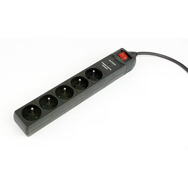 LargeDescHTML - Surge protector, 5 sockets, 4.5 m, black Built-in surge protection Designed for electrical loads up to 16 A High quality flame-retardant plastic case Monitors correct grounding of the wall socket Monitors correct work of protection circuit Child protection shutters on each socket The information provided on this page is a property of the manufacturer or the brand.To find out more, please visit: http://gembird.com/