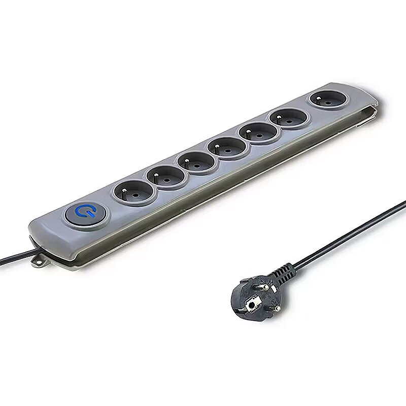 Izskats ir svarīgs Mūsu pārsprieguma aizsargs lieliski iederēsies jūsu ierīcēs. Tas ir iespējams, pateicoties elegantai pelēkai krāsai. Dizains ir veidots saskaņā ar jaunākajām tendencēm, tas apvieno eleganci un ērtu lietošanu. Iegūstiet vairāk vietas, aptiniet kabeli ap pārsprieguma aizsargu, novietojiet to uz grīdas vai piestipriniet pie mēbelēm un izbaudiet pārvietošanās brīvību.