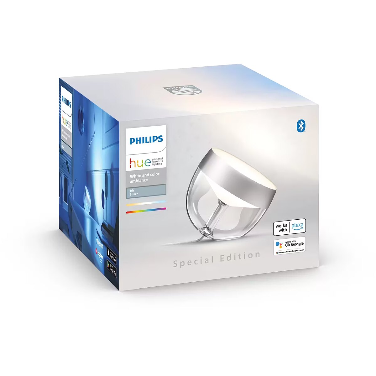 ShortSummaryDescription - Philips Hue White and colour ambience Iris silver special edition, Smart table lamp, Bluetooth/Zigbee, Silver, LED, Metal, Synthetics, Non-changeable bulb(s)