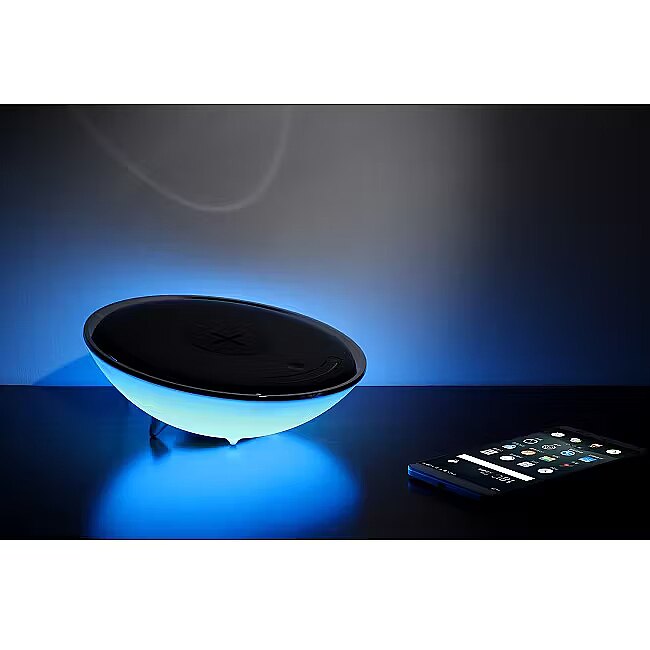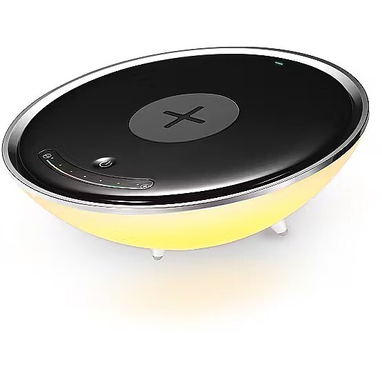 Modernse disainiga LED lamp öökapile. Öölambil on kahevärviline valgustus (sinine ja kollane), mis pakub rahustavat valgust magamistuppa ning tänu muudetavale valgustemperatuurile vahemikus 2700 – 3300 K on võimalik lambi valgust reguleerida. Juhtmevaba QI laadija