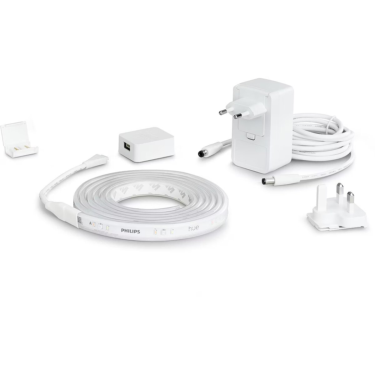 LongDesc - Bring colourful light to any area of your home! Flexible and extendable up to 10 meters, this indoor lightstrip adheres to any surface and shines a single shade of white or colour light.Shape light the way you likeBend it. Curve it. Cut it to size. Create your personal lighting vibes.Customise with the Hue appSet up and customise right in the Hue app! Easily change the colour, create automations, and more to make your lightstrip work for your space and the occasion. Go hands-free with voicePair with smart home assistants such as Amazon Alexa, Apple Home, and Google Assistant, to control your lightstrip with your voice.Control your wayUse the Hue app, your voice, or smart accessories to control your setup. Add accessoriesGet a little more convenience out of your lightstrip with easy-to-use accessories such as a dimmer switch or motion sensor.Bright, powerful lightGet consistent colour — and with millions of them, it's really any colour — and bright, beautiful light.Optimal design, optimal effectThe transparent sleeve was designed to keep dust and damage away from your lightstrip, meaning the light output is always at the optimal level.Ultimate flexibilityCut the lightstrip on the marked lines to fit your space, or make it even longer with extension strips up to 10 m. Bend, curve, and shape it to fit your space.
