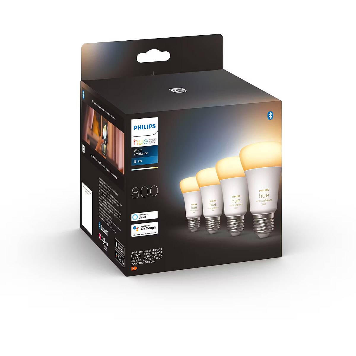 ShortSummaryDescription - Philips Hue White ambience A60 – E27 smart bulb – 800 (4-pack), Smart bulb, Bluetooth, White, LED, E27, A60