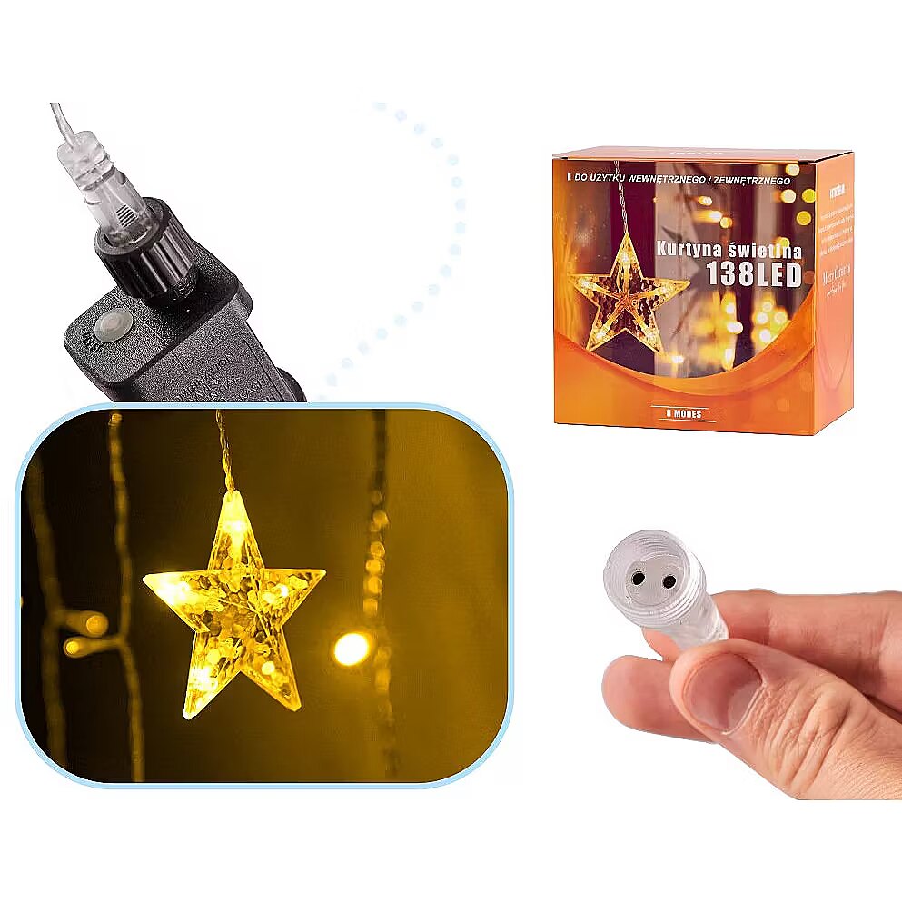description_ru - Aizkars ir lieliski piemērots kā unikāls Jaungada vakara dekors, piemēram, uz svētku galda, loga vai sienas dekorēšanai. Taču lampas var izmantot arī citos gadalaikos, jo īpaši kā maigu romantisku apgaismojumu dzīvojamā istabā. Piekaramie gaismekļi veido skaistu akcentu telpā, rada atmosfēru un noteikti iepriecinās jūsu klientus - cieši izvietotās diodes nodrošina, ka katra telpa izskatās iespaidīgi. PARAMETRI: Krāsa: silti balta Sekvenču skaits: 8 Gaismu skaits Strāvas avots: elektrotīkls Zvaigžņu skaits: 6 gab.