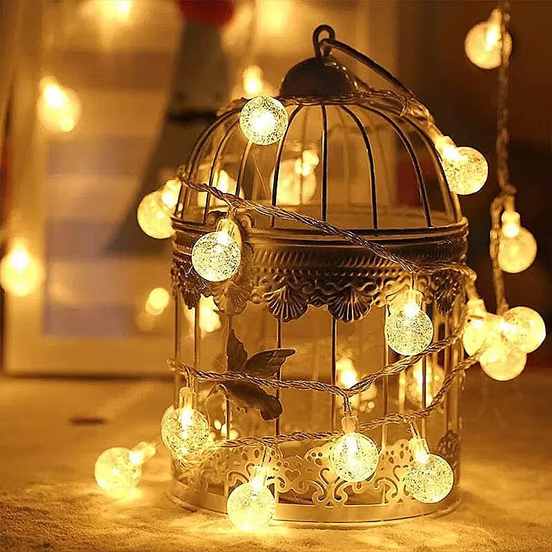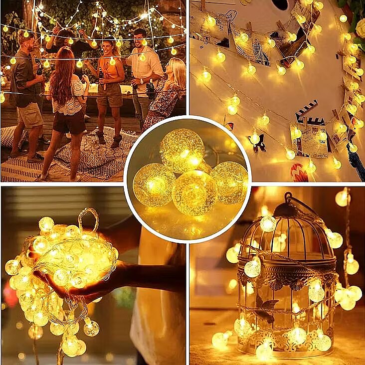 The unique ball-shaped Christmas lights will brighten up any interior and bring Christmas magic. Thanks to the bright color of the lamp, they look beautiful in the interior, making it cozy and inviting you to relax on winter evenings.