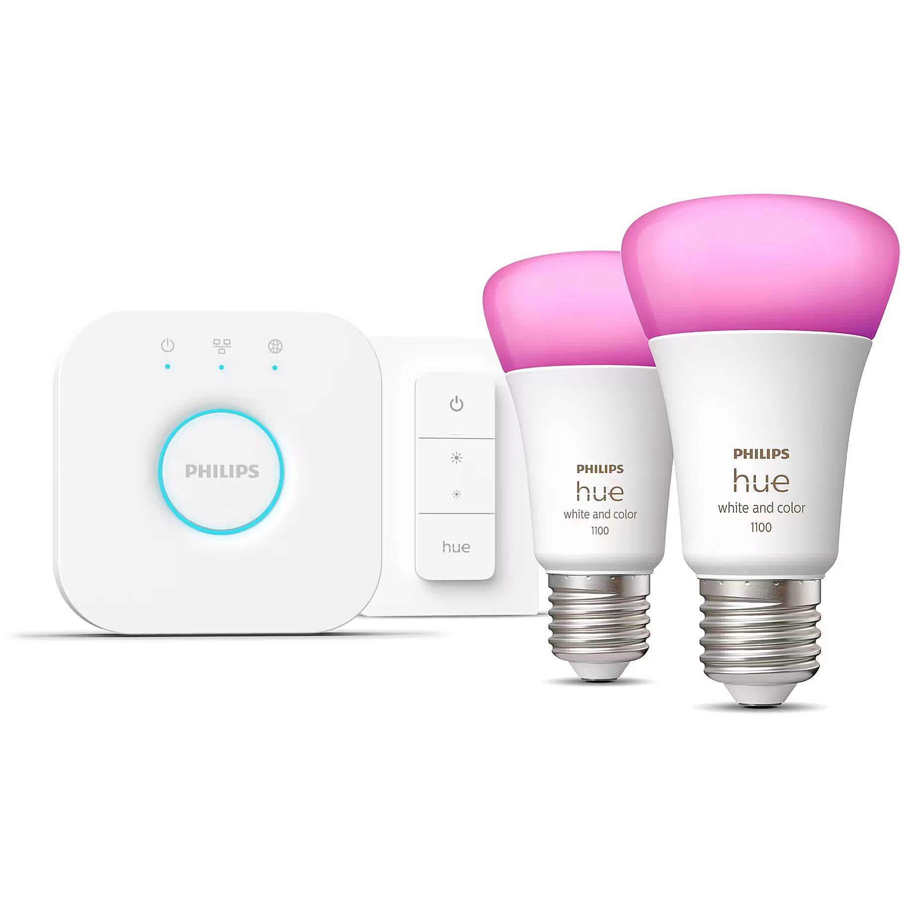 Title - Philips Hue White and colour ambience Starter kit: 2 E27 smart bulbs (1100) + dimmer switch