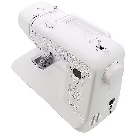 Iekļautie piederumi - Piederumu atvilktne 90 adatas (3 gab.) Ripper ar suku Eļļotājs Skrūvgriezis Skrūvgriezis Spoles (3 gab.) Padeves mehānisma atvienošanas plāksne Spoles tapas Spoles tapas fiksators Putekļu aizsargs Preses Universāls Pogu caurumu šūšanai Rāvējslēdzēju šūšanai Apšūšanai Satīna šūšanai Aklo šūšanu