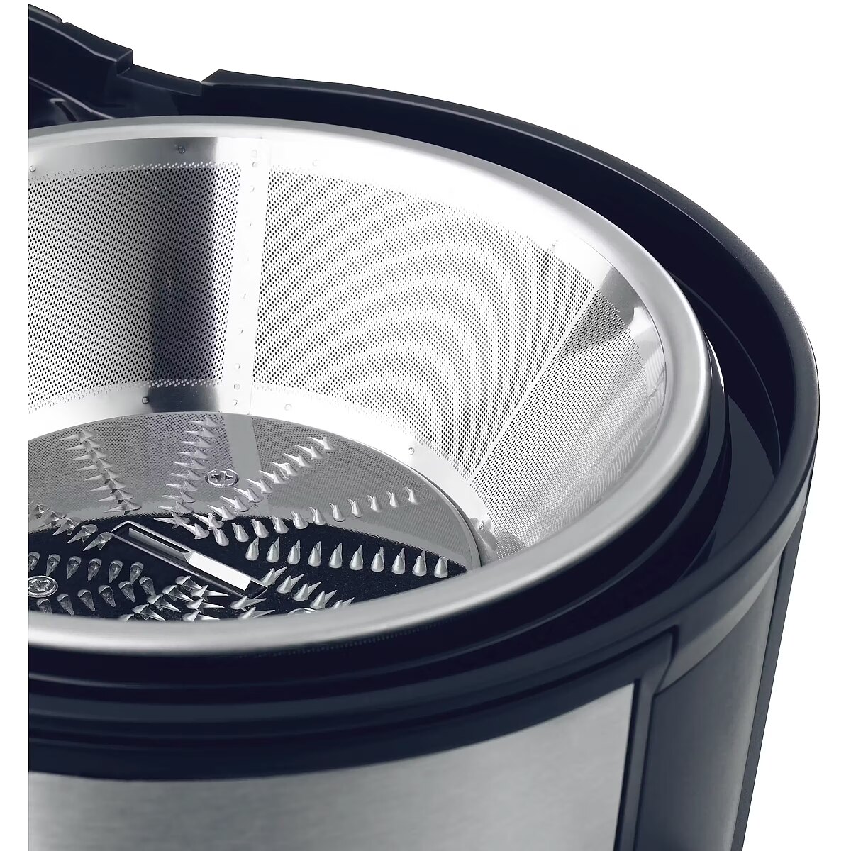 - Filtr ze stali szlachetnej pozwalający na dokładne wyciśnięcie soku z owoców i warzyw