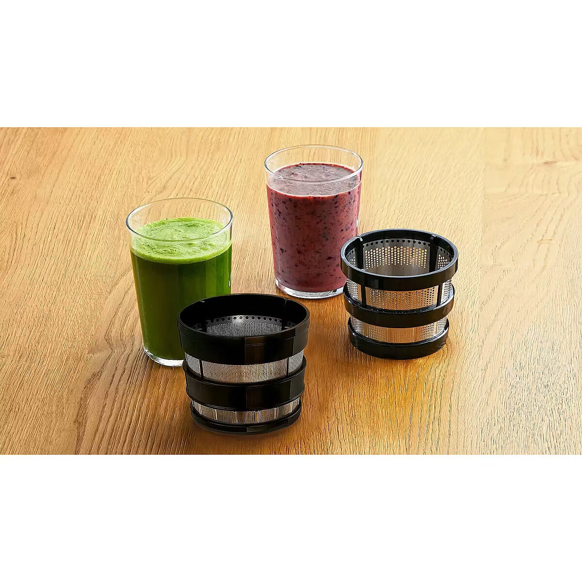 Õrn pressimistehnoloogia võimaldab kasutada aeglast, kuid tõhusat pöörlemist, et saada kätte tervislik mahl. Erakordselt vastupidav Tritanist kruvi peenestab kergesti kõvad puu- ja köögiviljad, pähklid ja külmutatud viljad. Kaks eri suuruses avadega filtrit võimaldavad valmistada tervislikke mahlasid ja smuutisid.